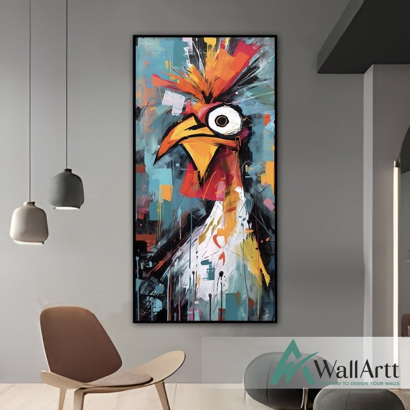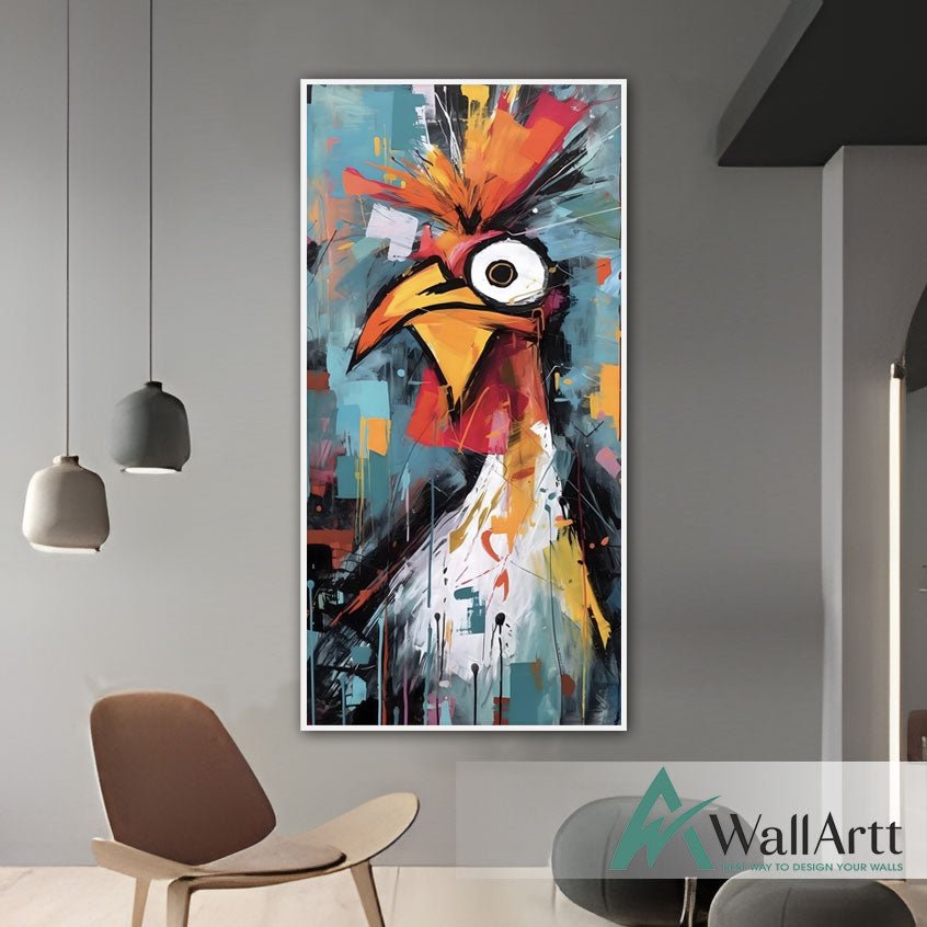 Abstract Bald Ibis Textured Partial Oil Painting - Wall Art