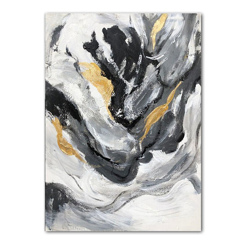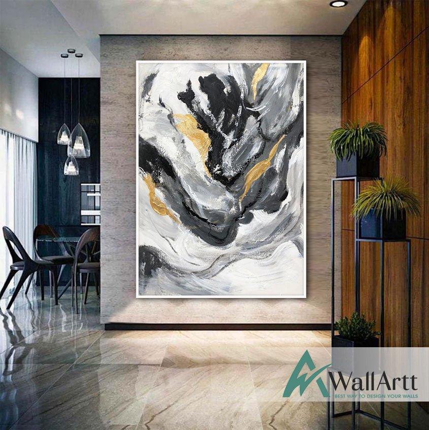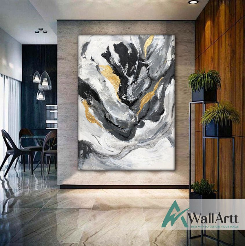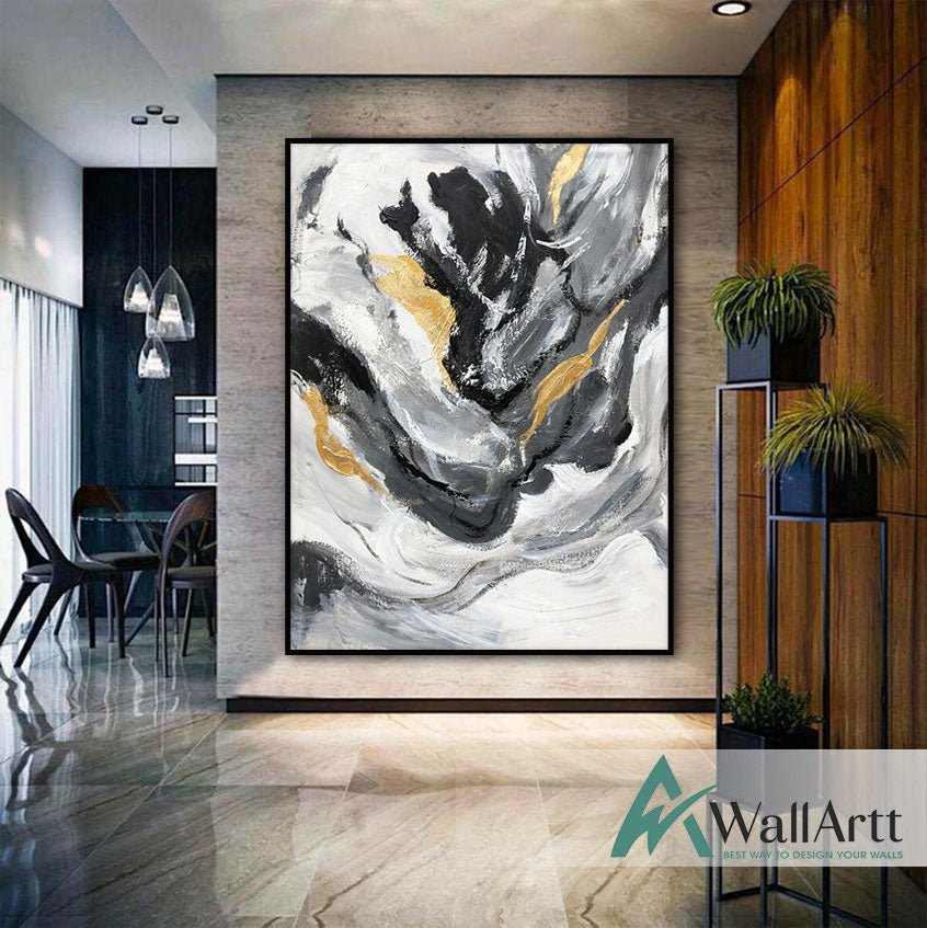 Abstract Black Gold Swirls II Textured Partial Oil Painting