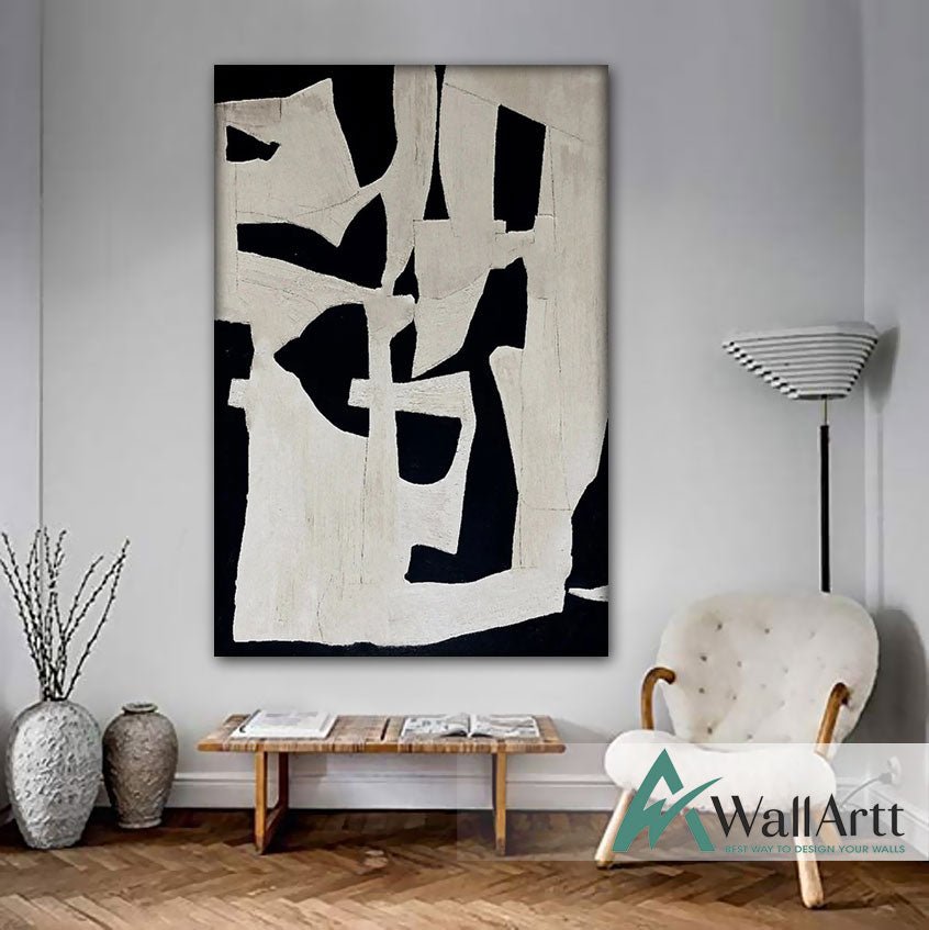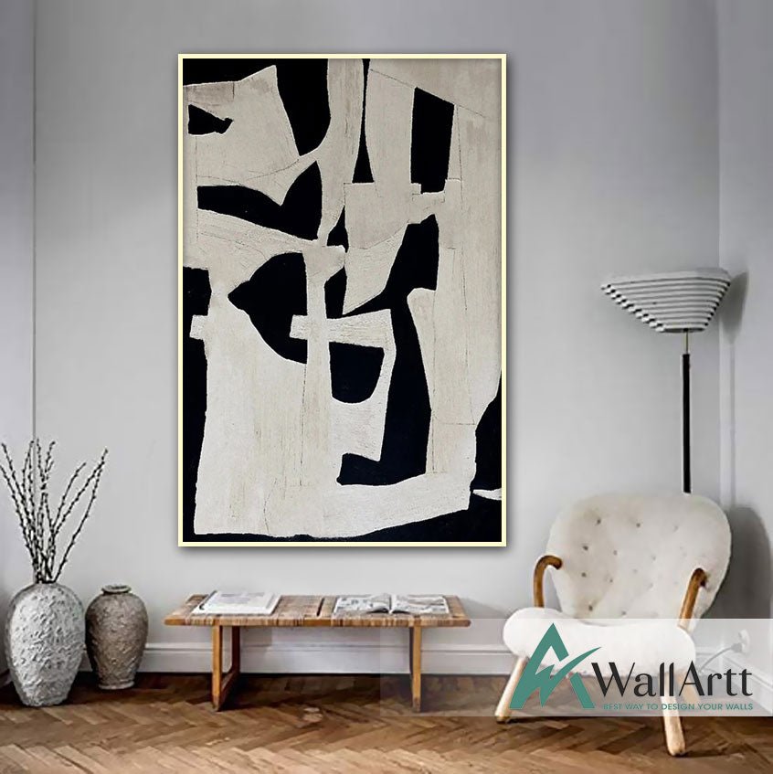Abstract Black Maze Textured Partial Oil Painting