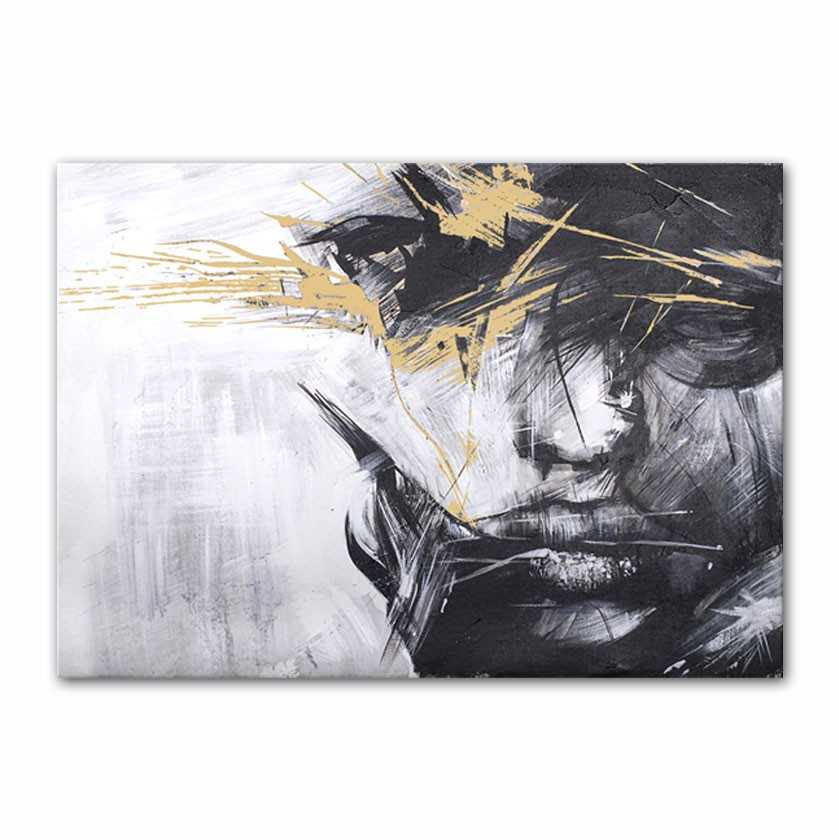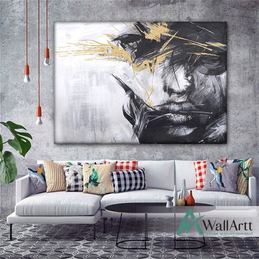 Abstract Black n White Woman with Gold Foil Textured Partial Oil Painting
