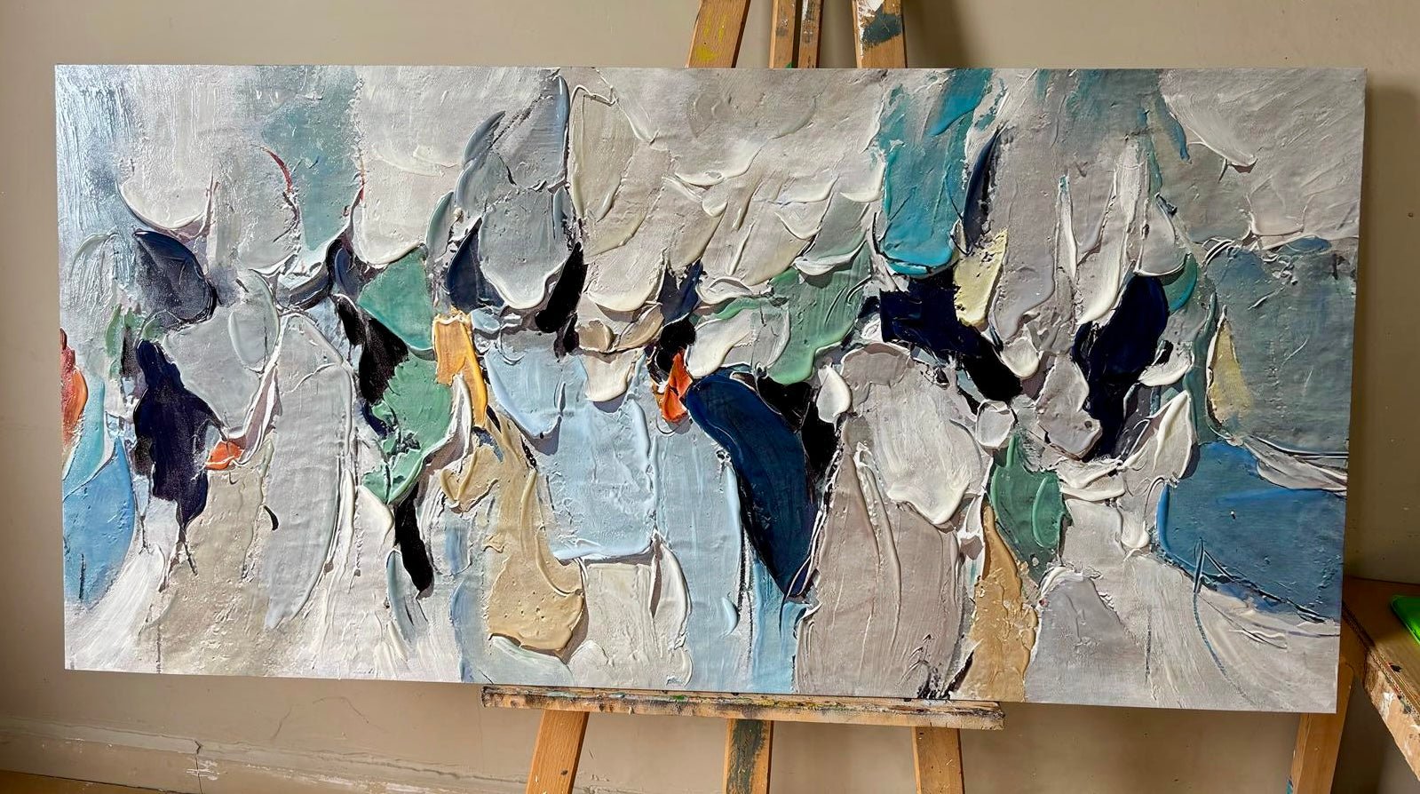 Abstract Blue n White 3d Heavy Textured Partial Oil Painting