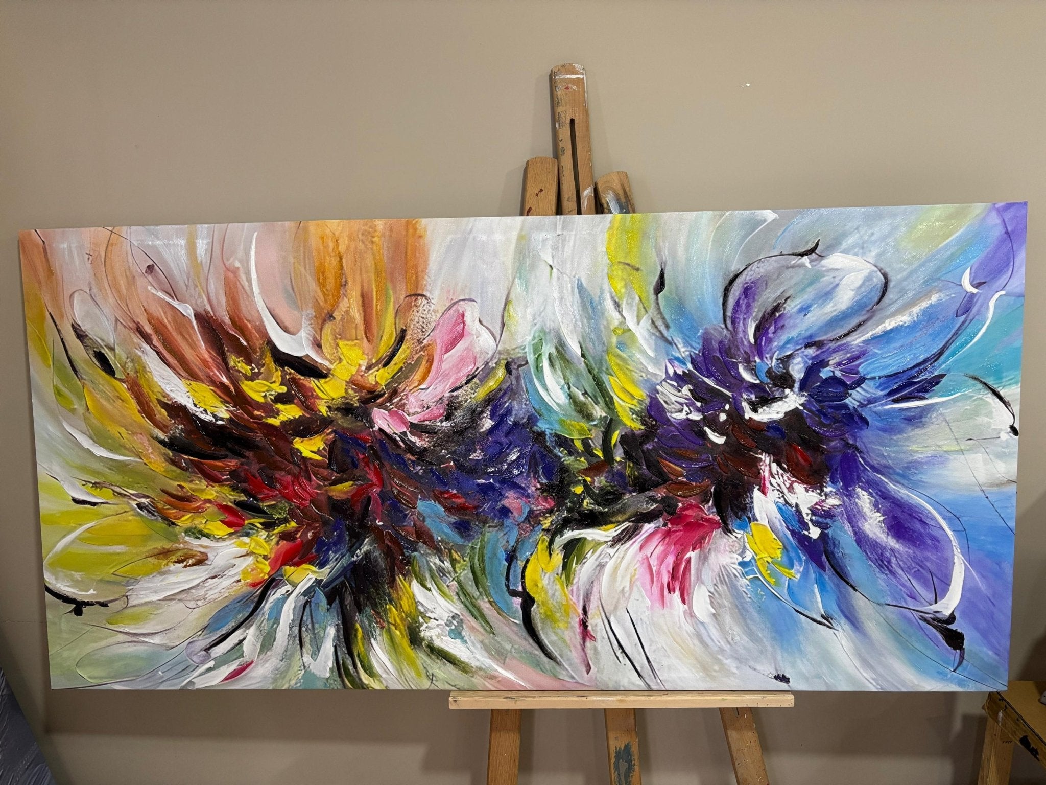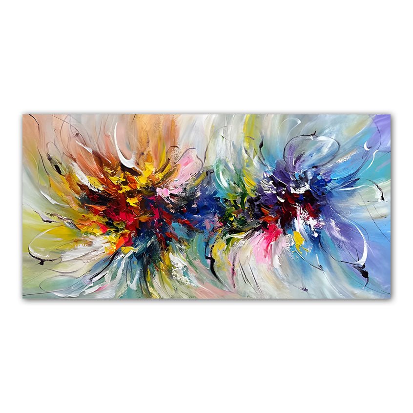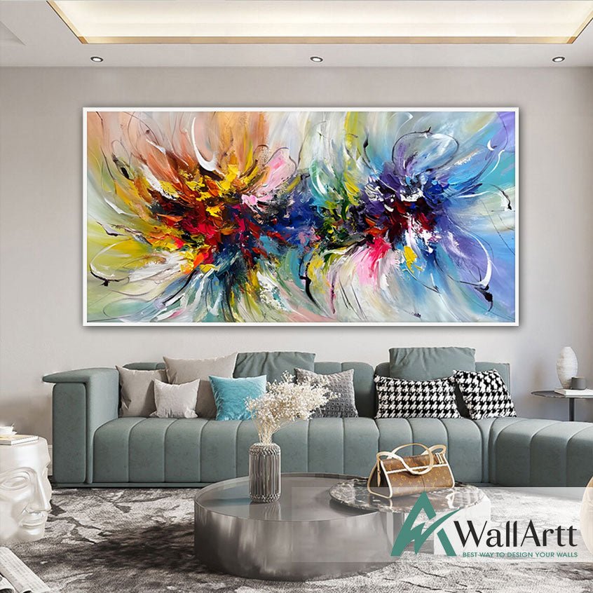 Abstract Color Explosion X Textured Partial Oil Painting - Wall Art