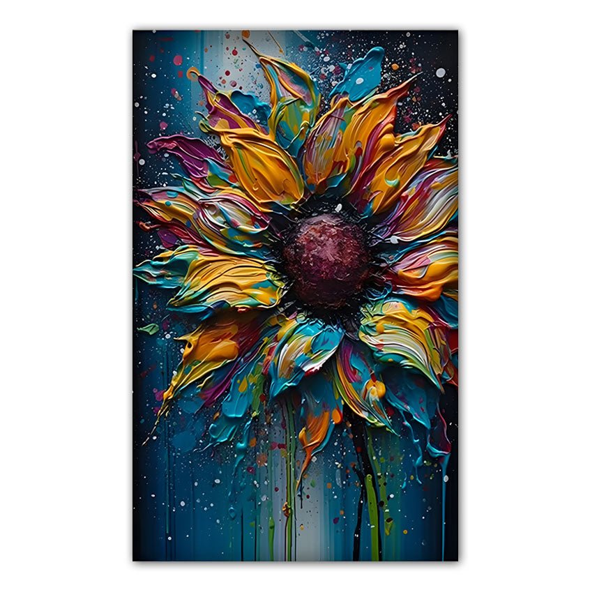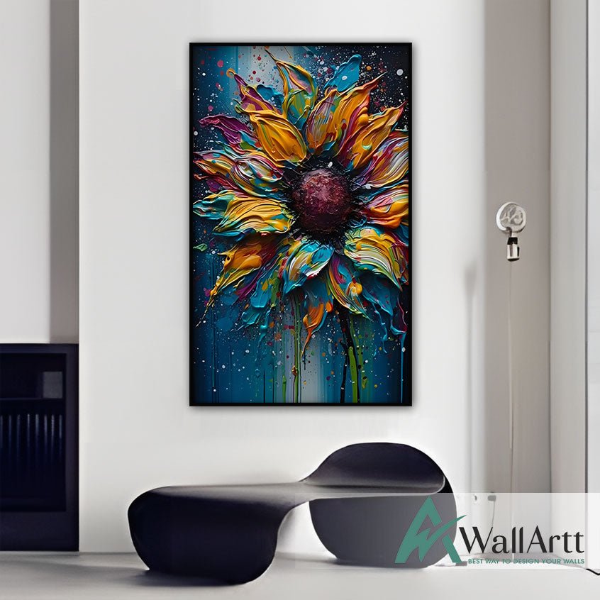 Abstract Colorful Sunflower 3d Heavy Textured Partial Oil Painting