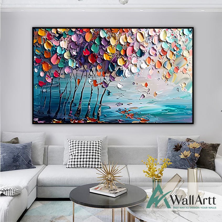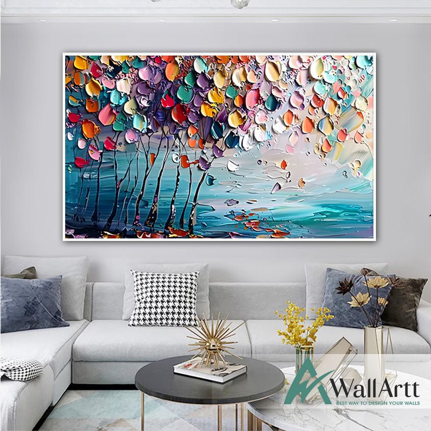 Abstract Colorful Tree 3d Heavy Textured Partial Oil Painting
