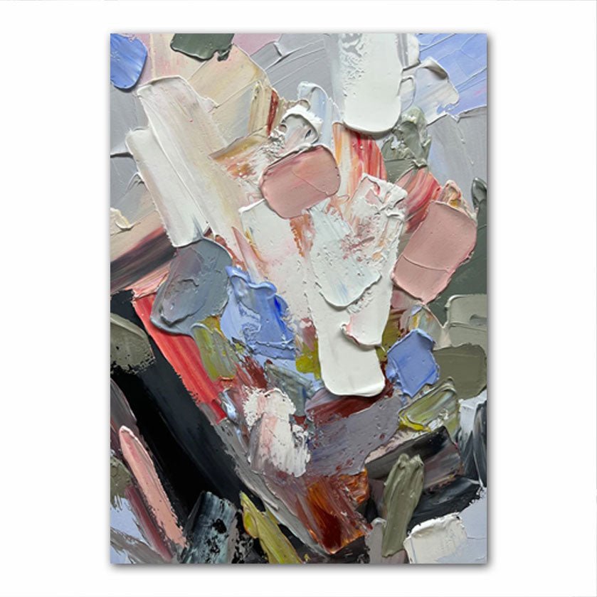 custom-made by our artists using spatulas(Palette Knife) and brushes according to your selected visual,dimensions, and frame on top of a printed canvas.