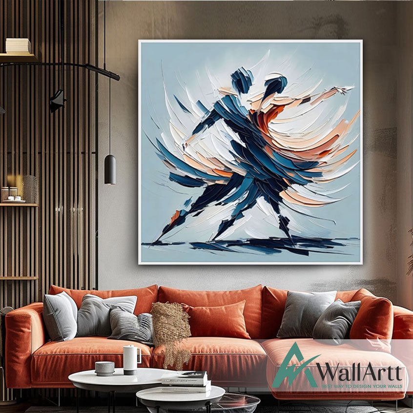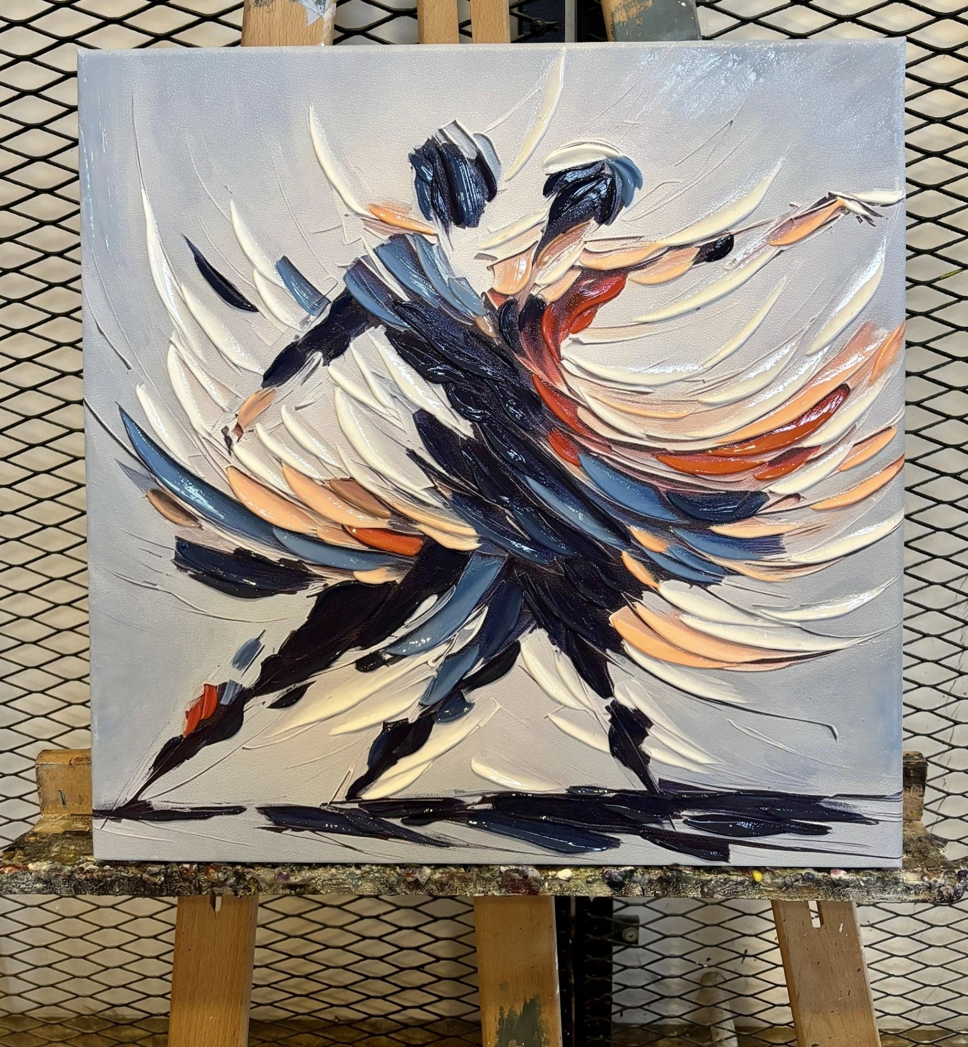 Abstract Dancers 3D Heavy Textured Partial Oil Painting - Wall Art