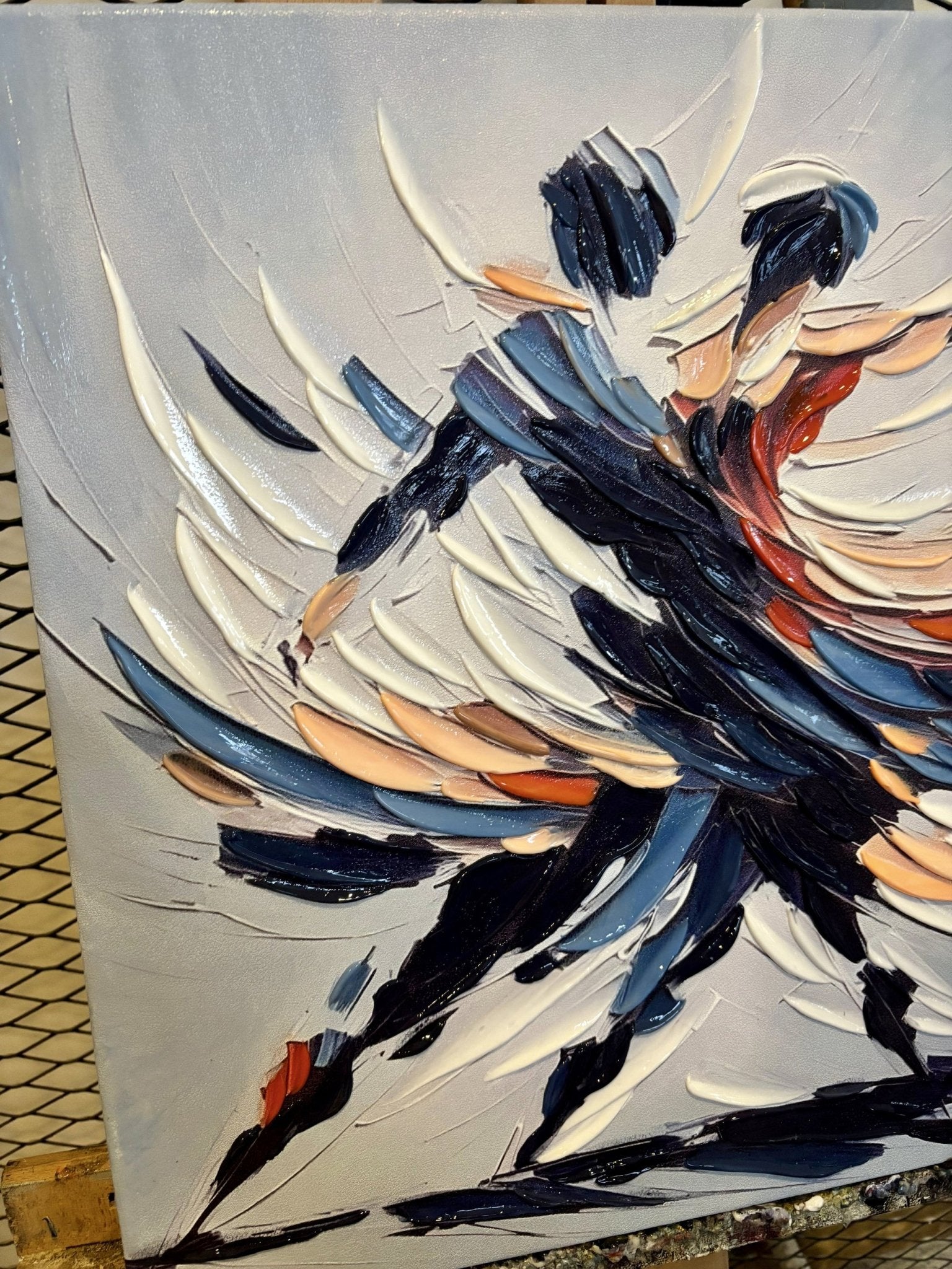 Abstract Dancers II 3D Heavy Textured Partial oil Painting - Wall Art