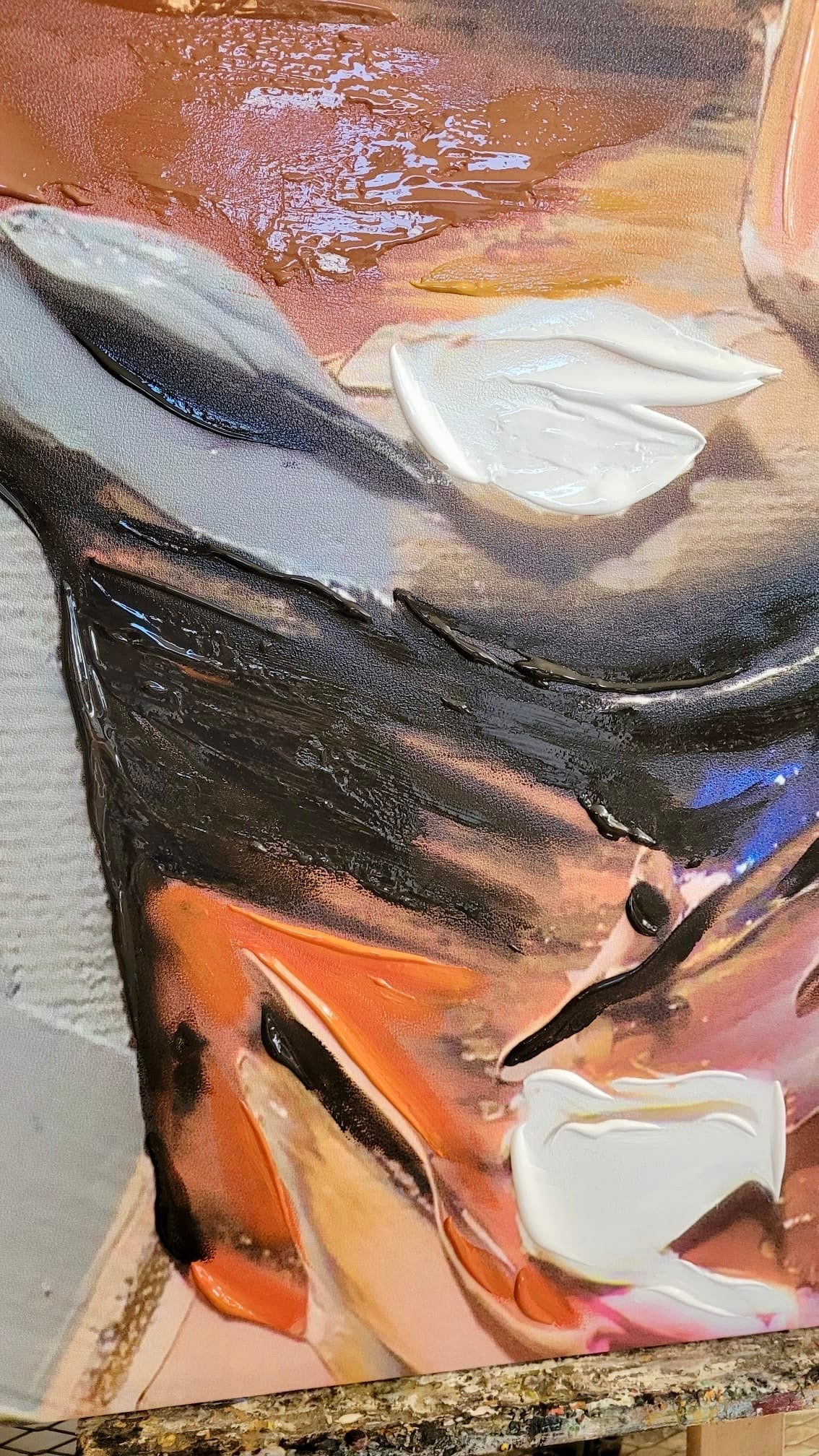 Our 3D paintings aim to achieve a three-dimensional effect using tools such as spatulas and brushes on the printed canvas to create a sense of depth and textural richness.