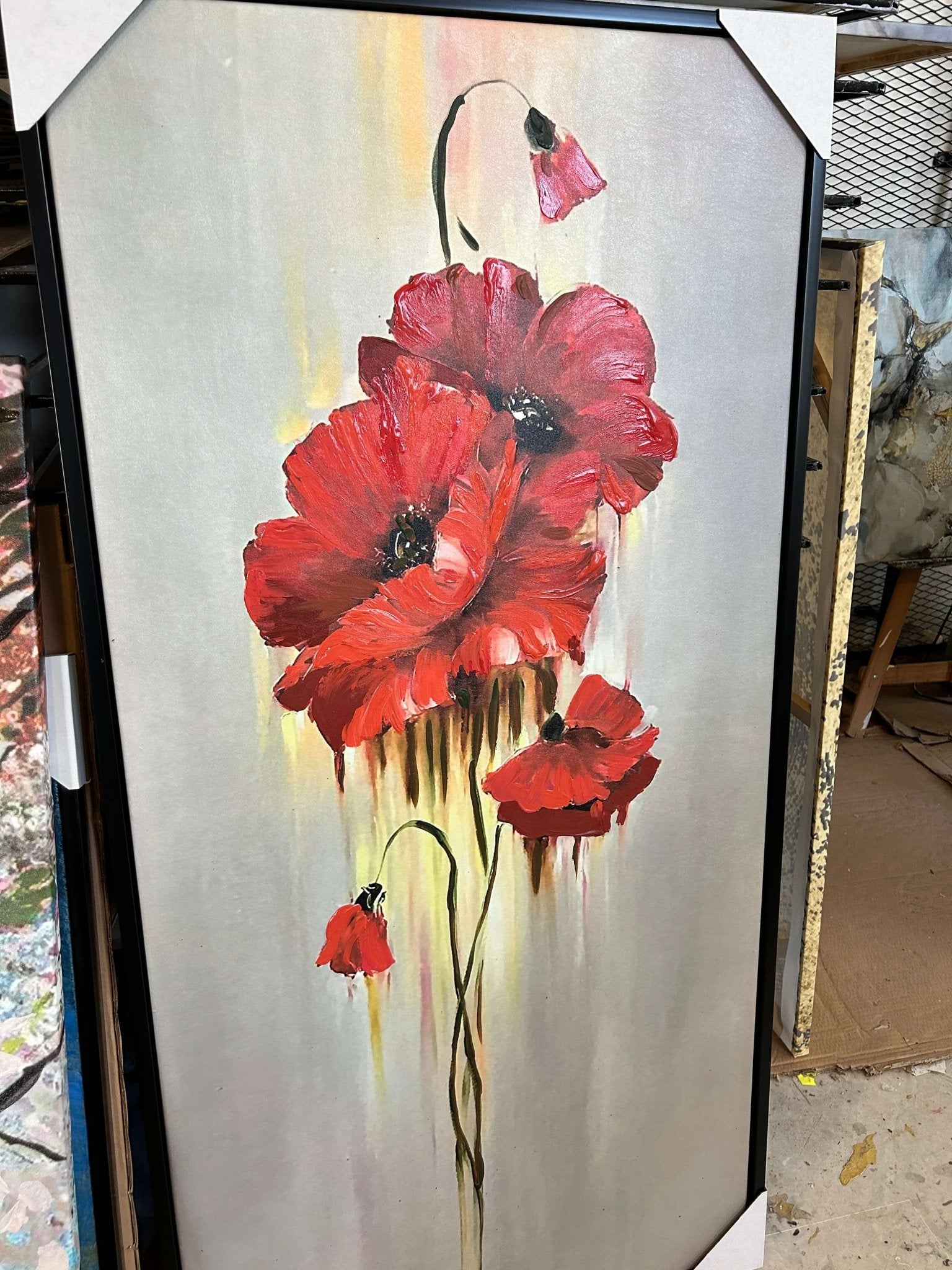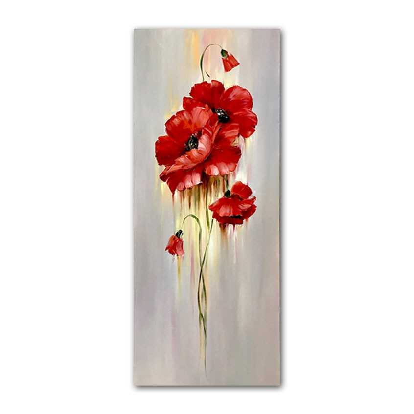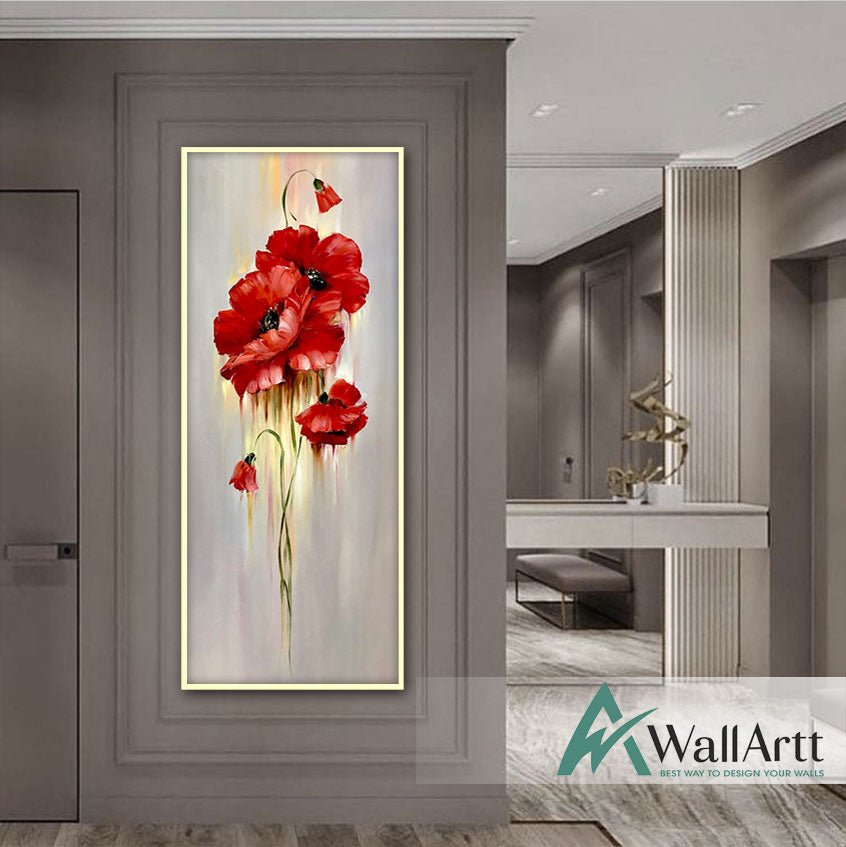 Abstract Floating Red Flowers Textured Partial Oil Painting