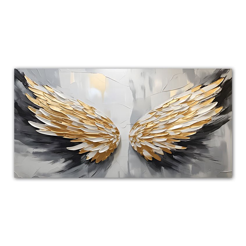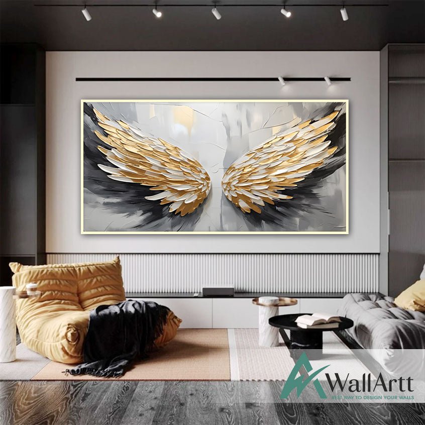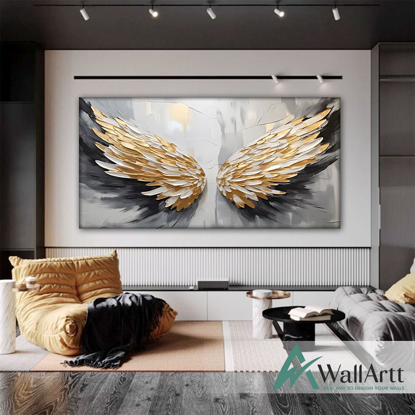 Abstract Gold Black Wings 3d Heavy Textured Partial Oil Painting