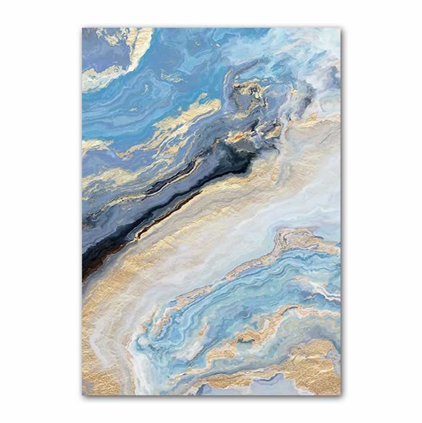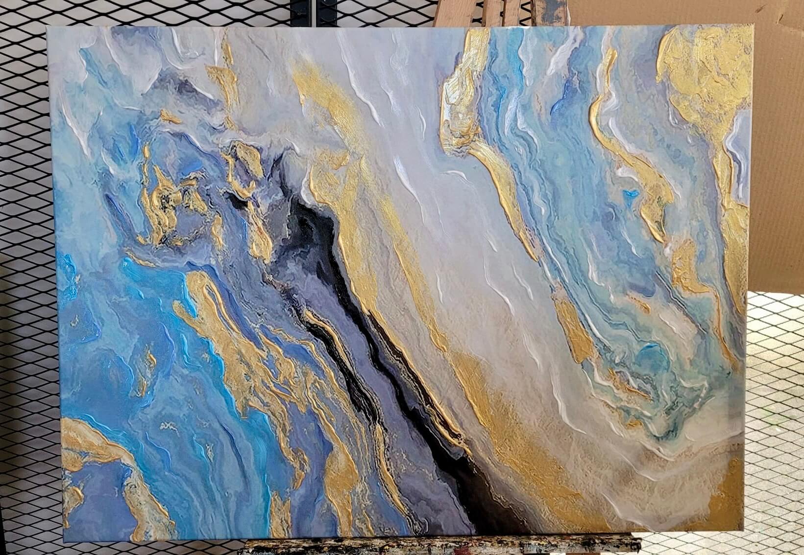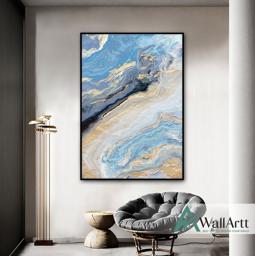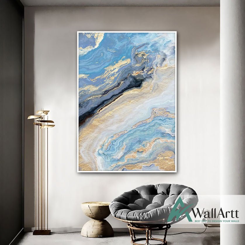 Abstract Gold Blue Marble Textured Partial Oil Painting