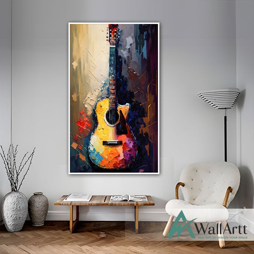 Abstract Guitar 3d Heavy Textured Partial Oil Painting