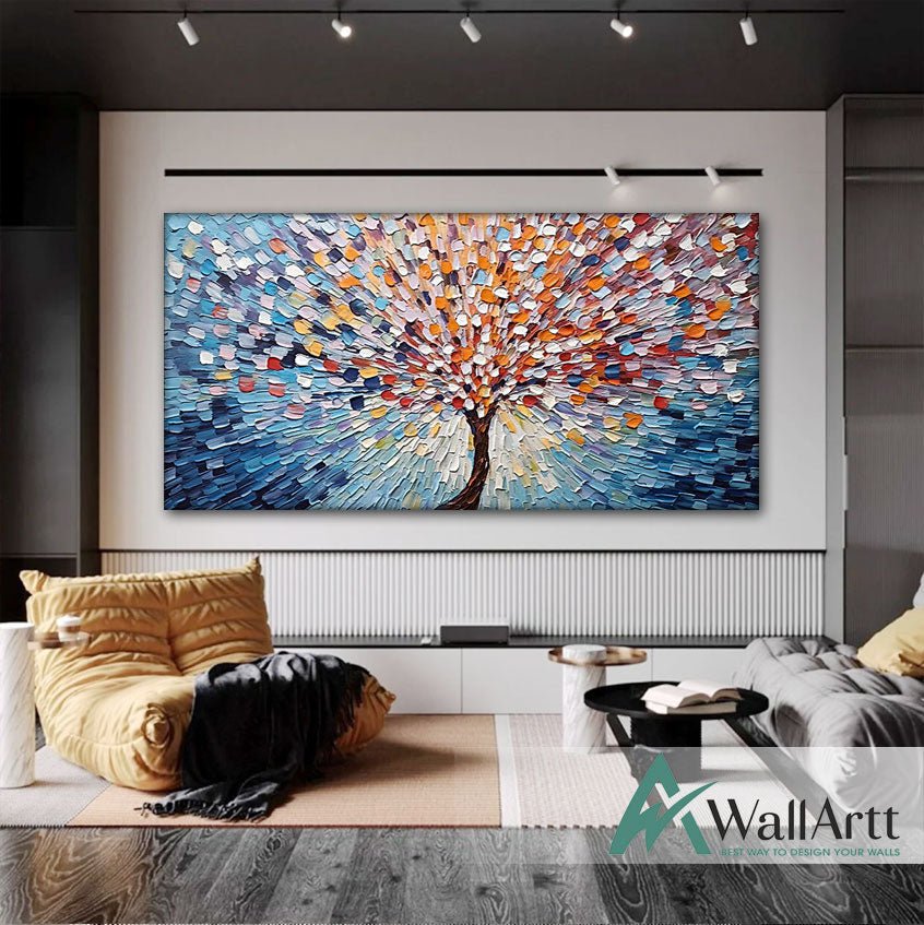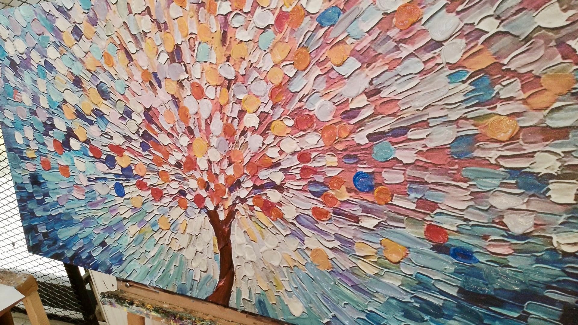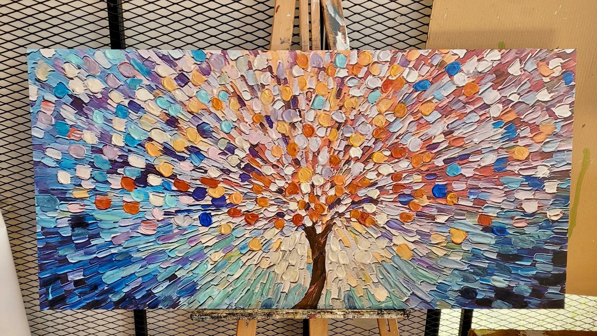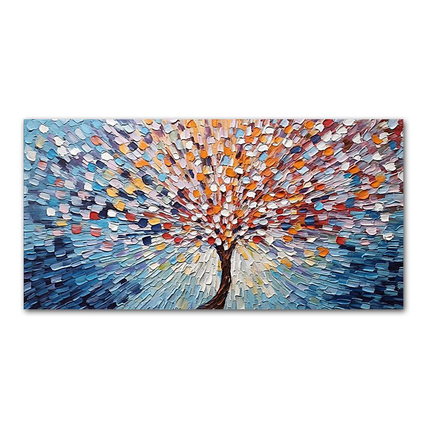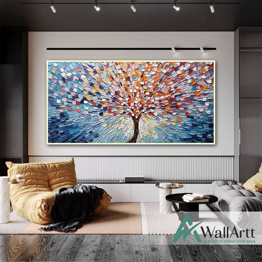 Abstract Orange Blue Tree 3d Heavy Textured Partial Oil Painting