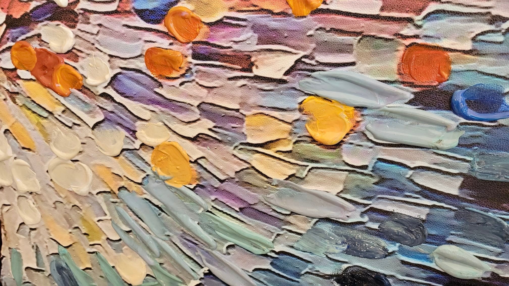 Our 3D paintings aim to achieve a three-dimensional effect using tools such as spatulas and brushes on the printed canvas to create a sense of depth and textural richness.