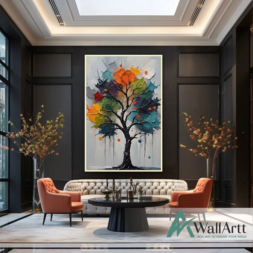 custom-made by our artists using spatulas(Palette Knife) and brushes according to your selected visual,dimensions, and frame on top of a printed canvas.