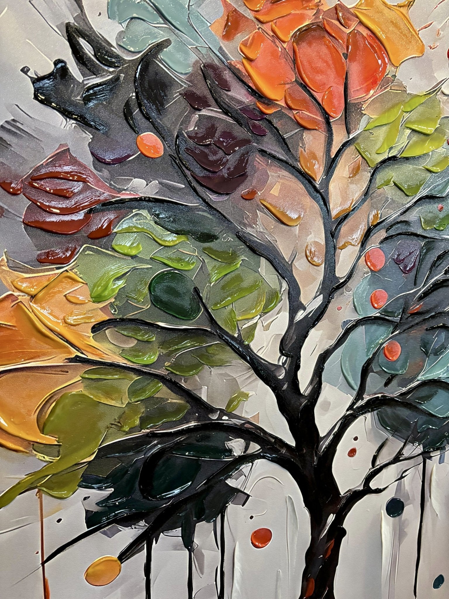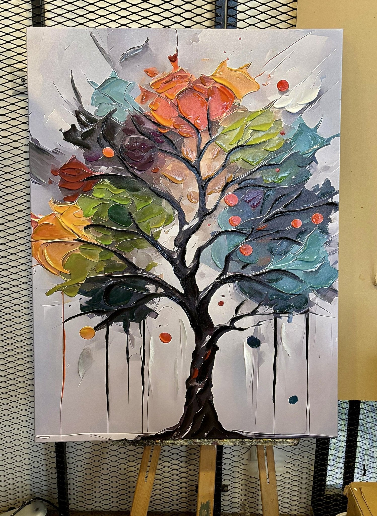 Our 3D paintings aim to achieve a three-dimensional effect using tools such as spatulas and brushes on the printed canvas to create a sense of depth and textural richness.