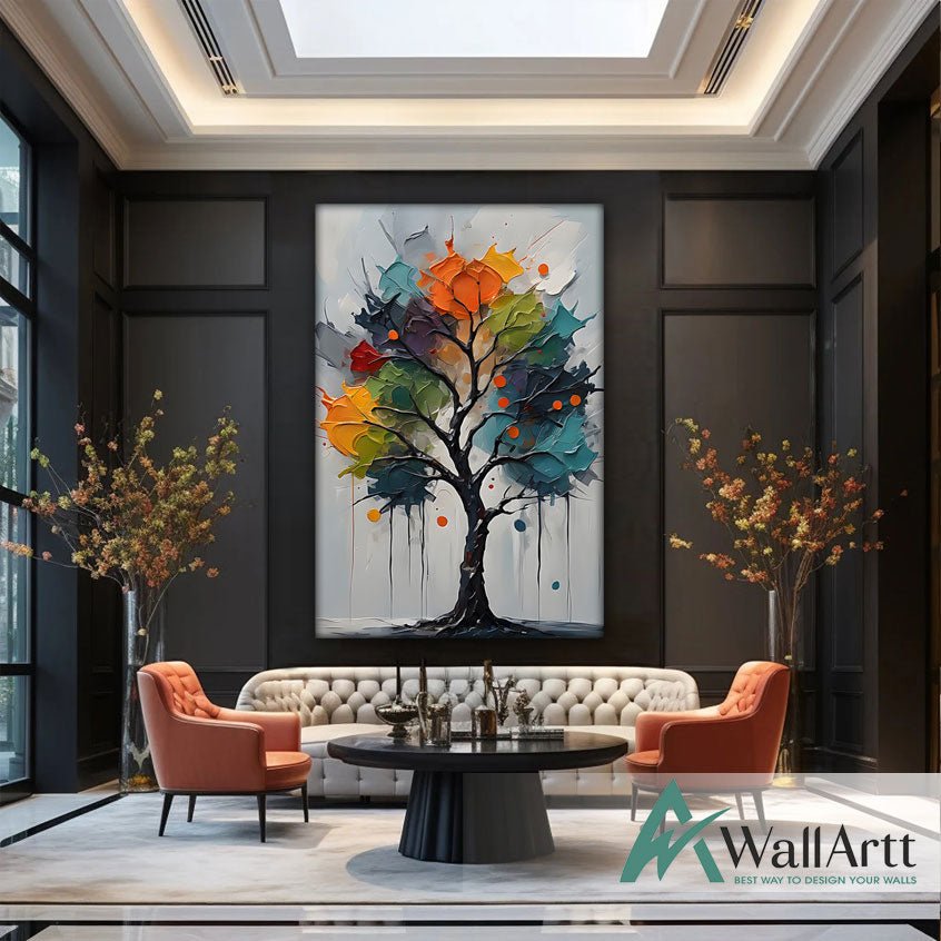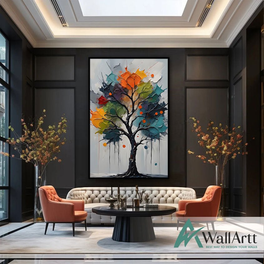 Abstract Orange Blue Tree II 3D Heavy Textured Partial Oil Painting - Wall Art