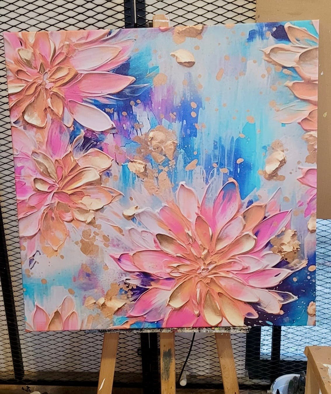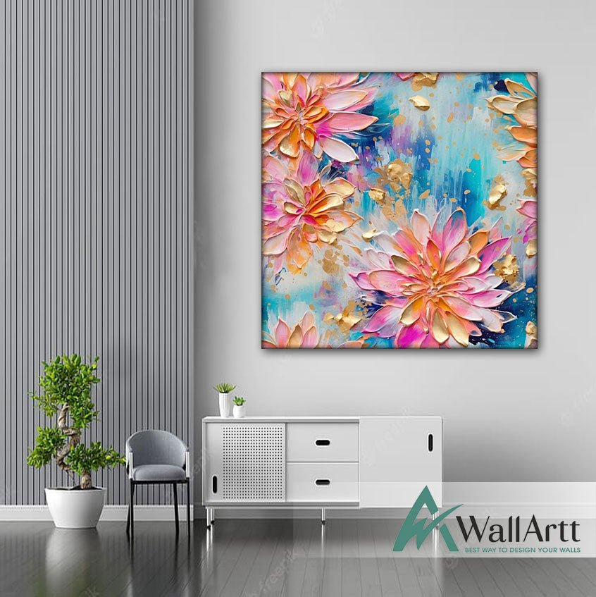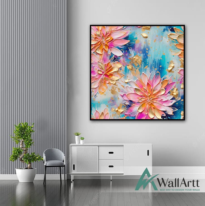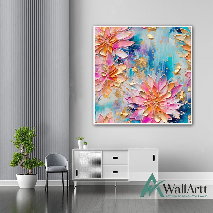 Abstract Pink Flowers II 3d Heavy Textured Partial Oil Painting