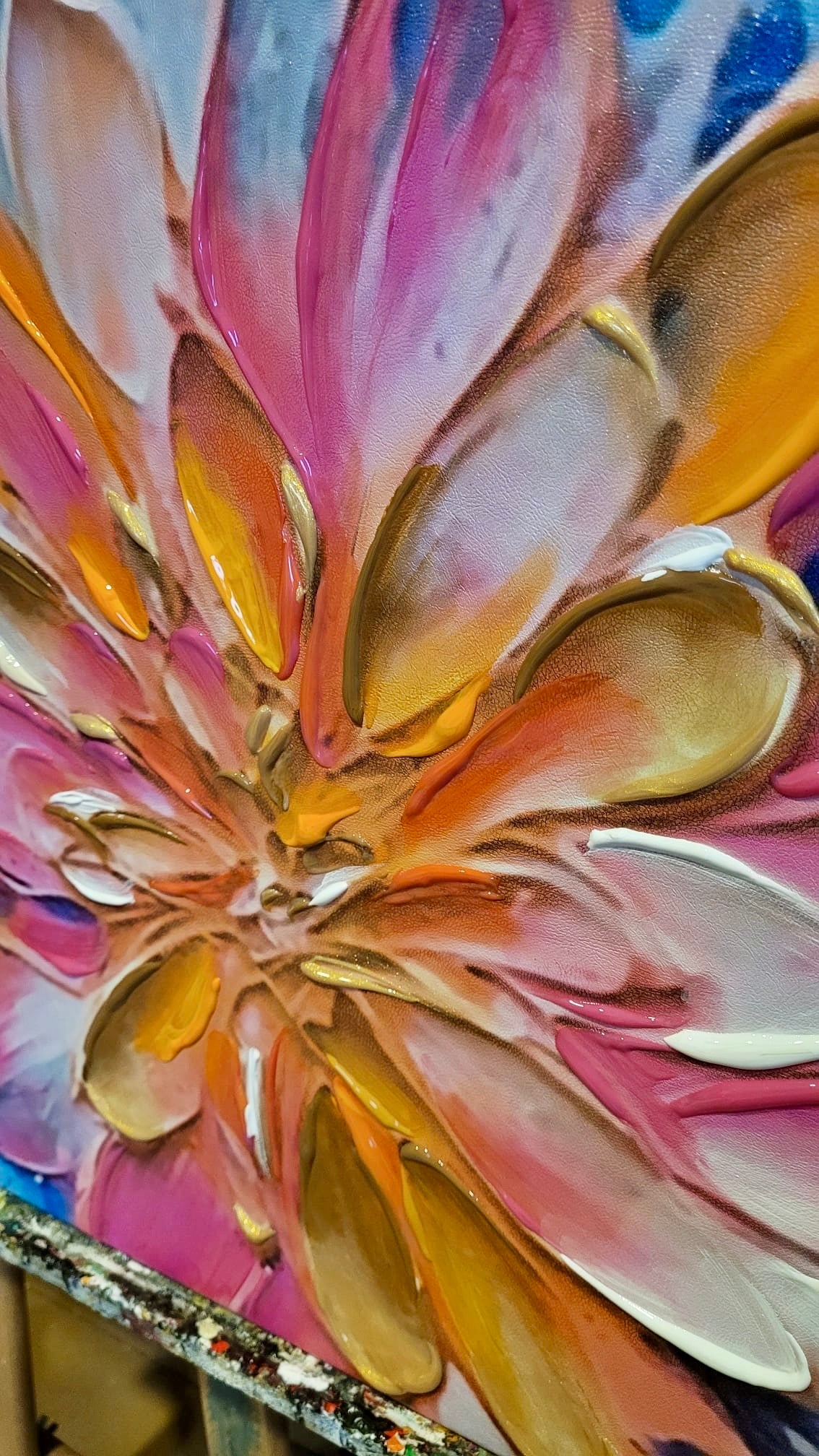 Our 3D paintings aim to achieve a three-dimensional effect using tools such as spatulas and brushes on the printed canvas to create a sense of depth and textural richness.
