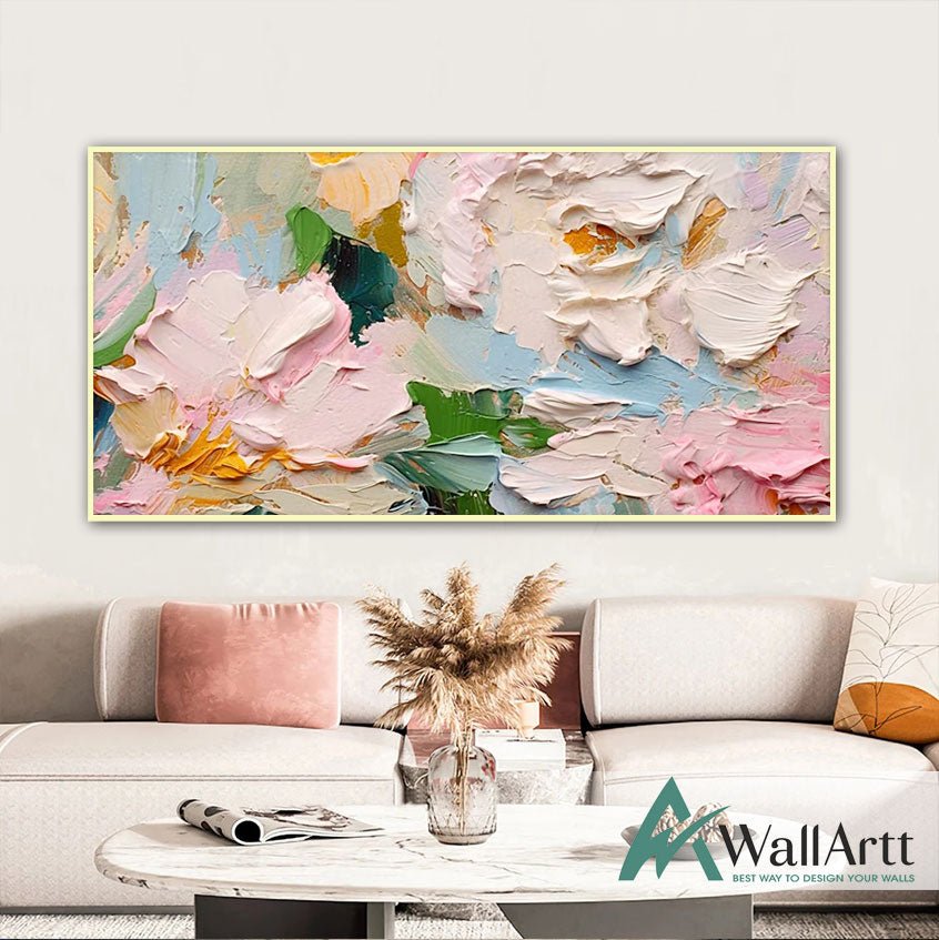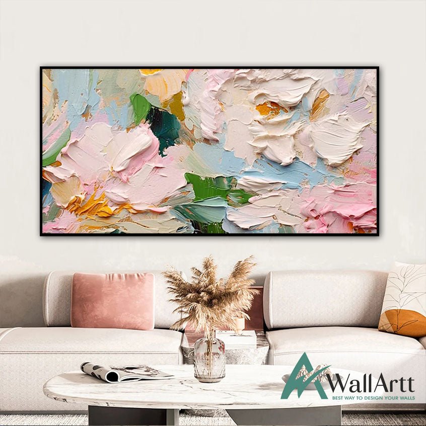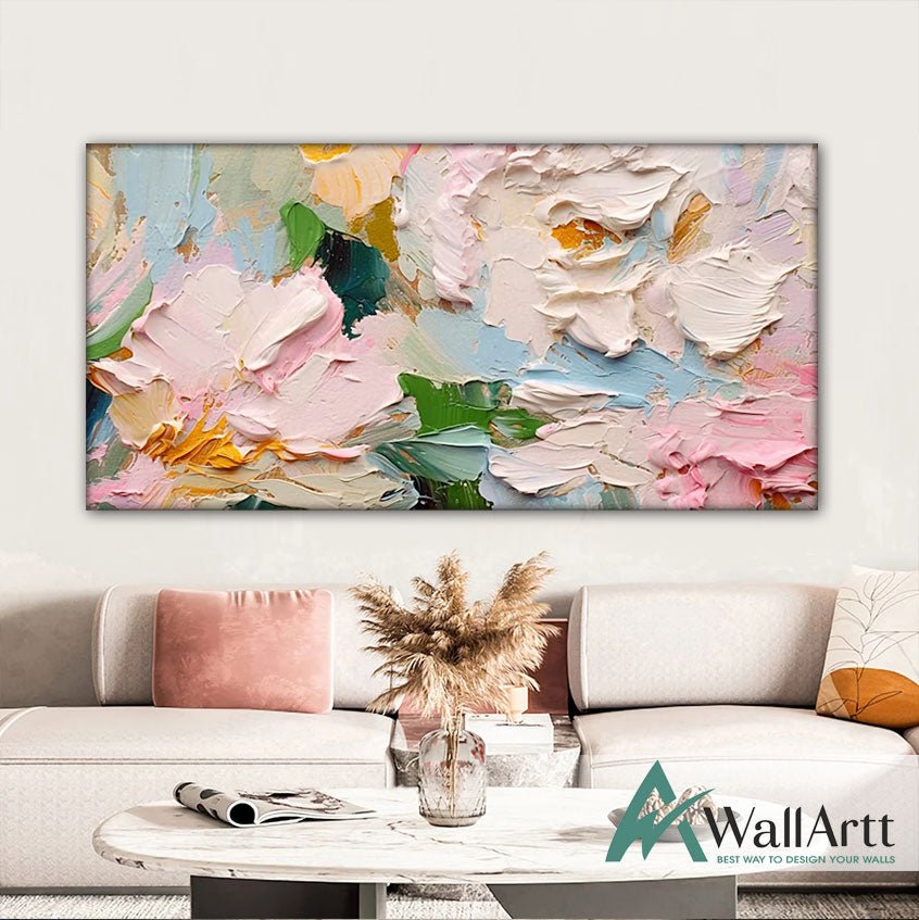 Abstract Pink n White Flowers 3d Heavy Textured Partial Oil Painting