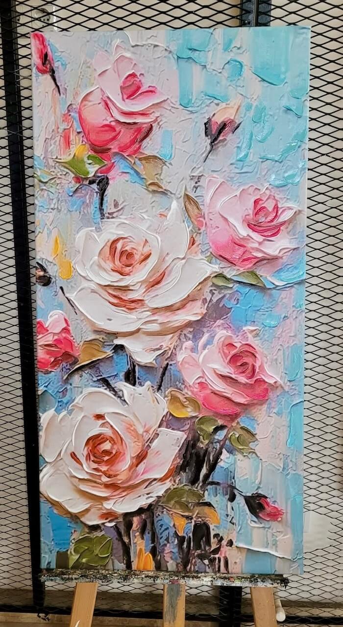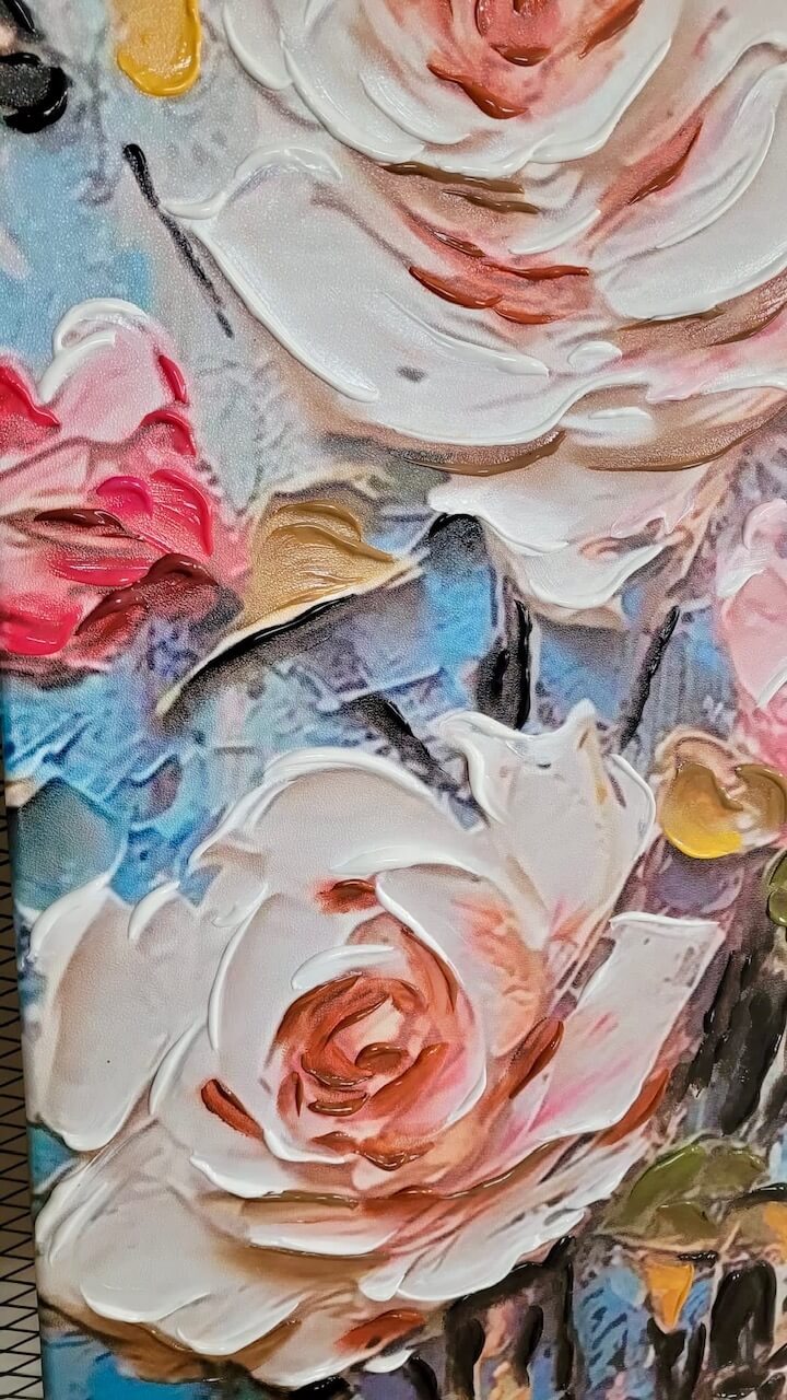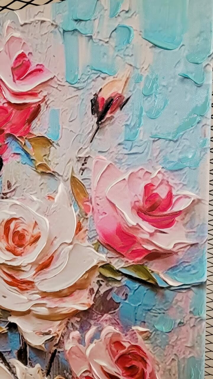 Our 3D paintings aim to achieve a three-dimensional effect using tools such as spatulas and brushes on the printed canvas to create a sense of depth and textural richness.