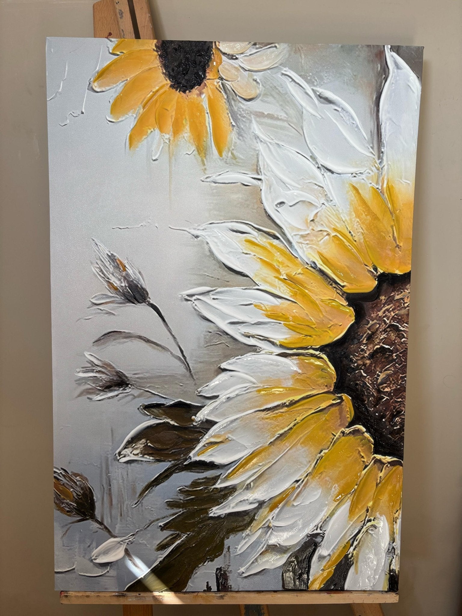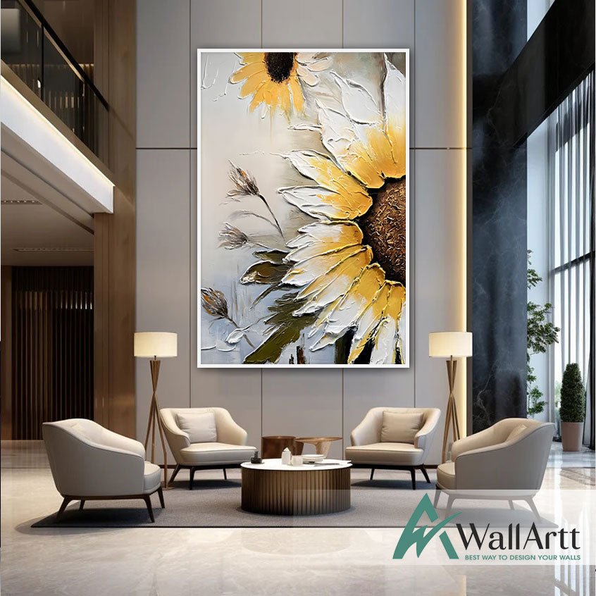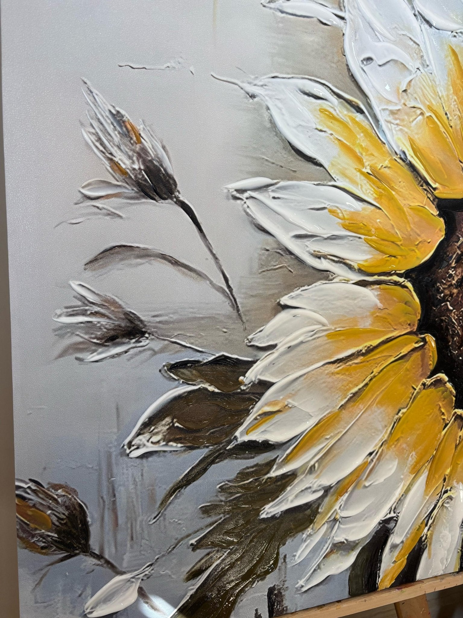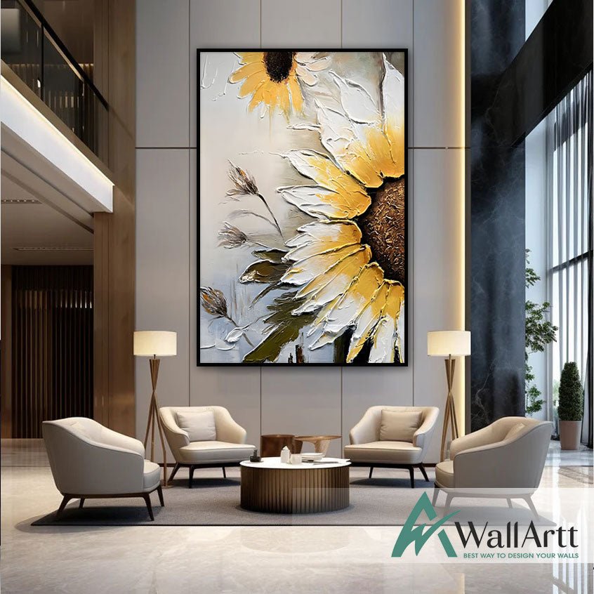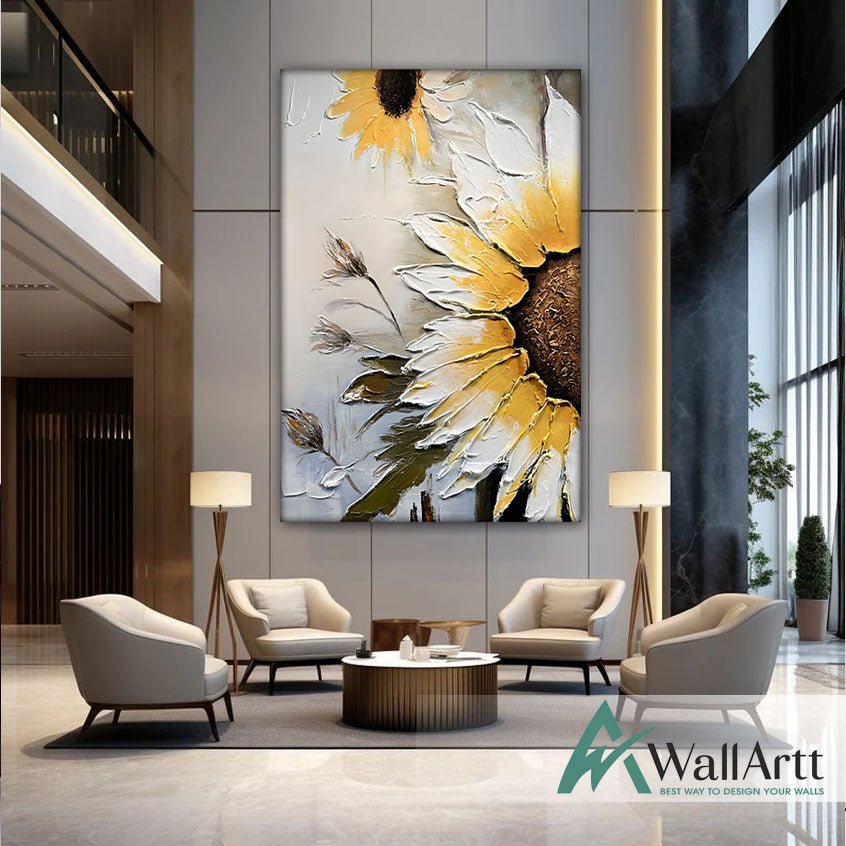 Abstract Sunflower 3D Heavy Textured Partial Oil Painting - Wall Art