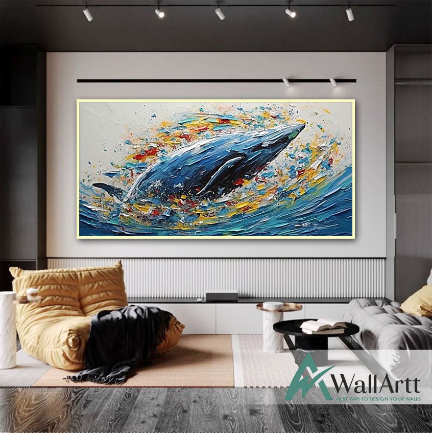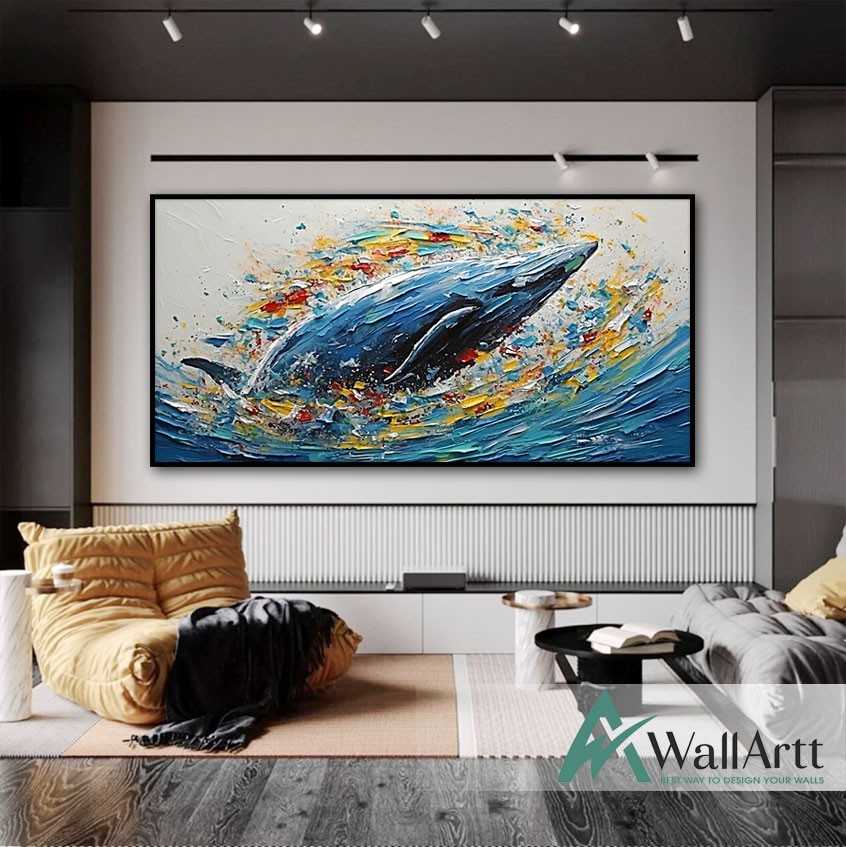 Abstract Whale 3D Heavy Textured Partial oil Painting
