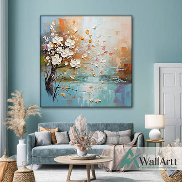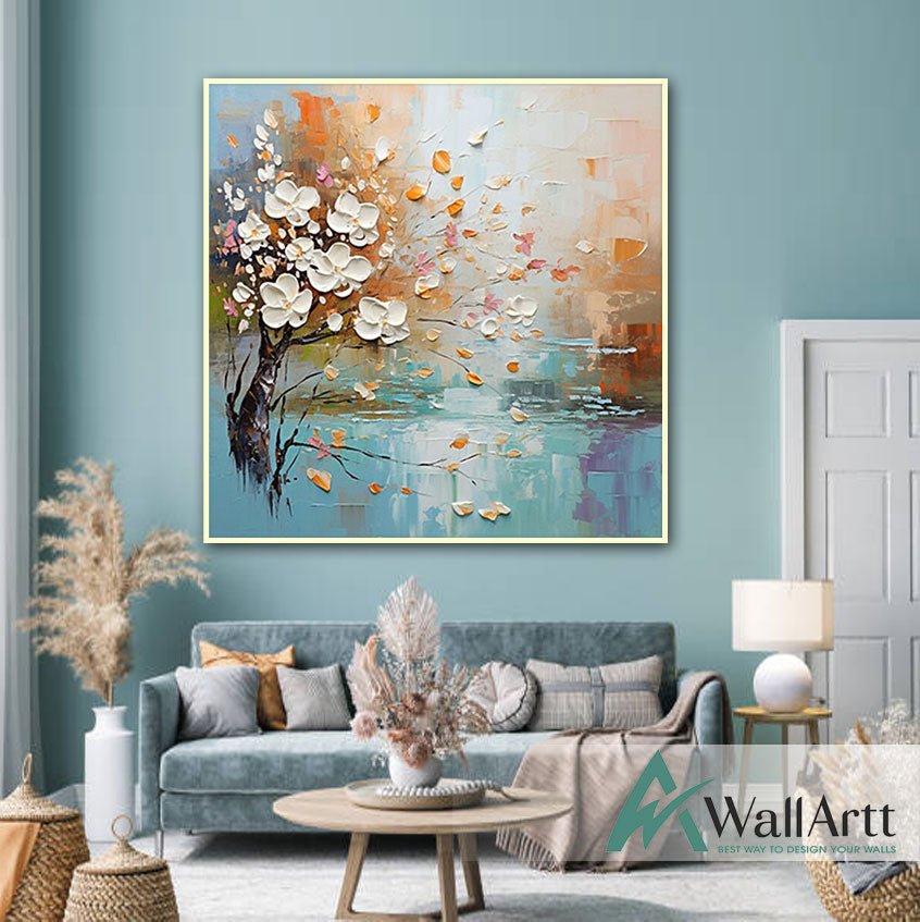 Abstract White Flower Branch II 3d Heavy Textured Partial Oil Painting
