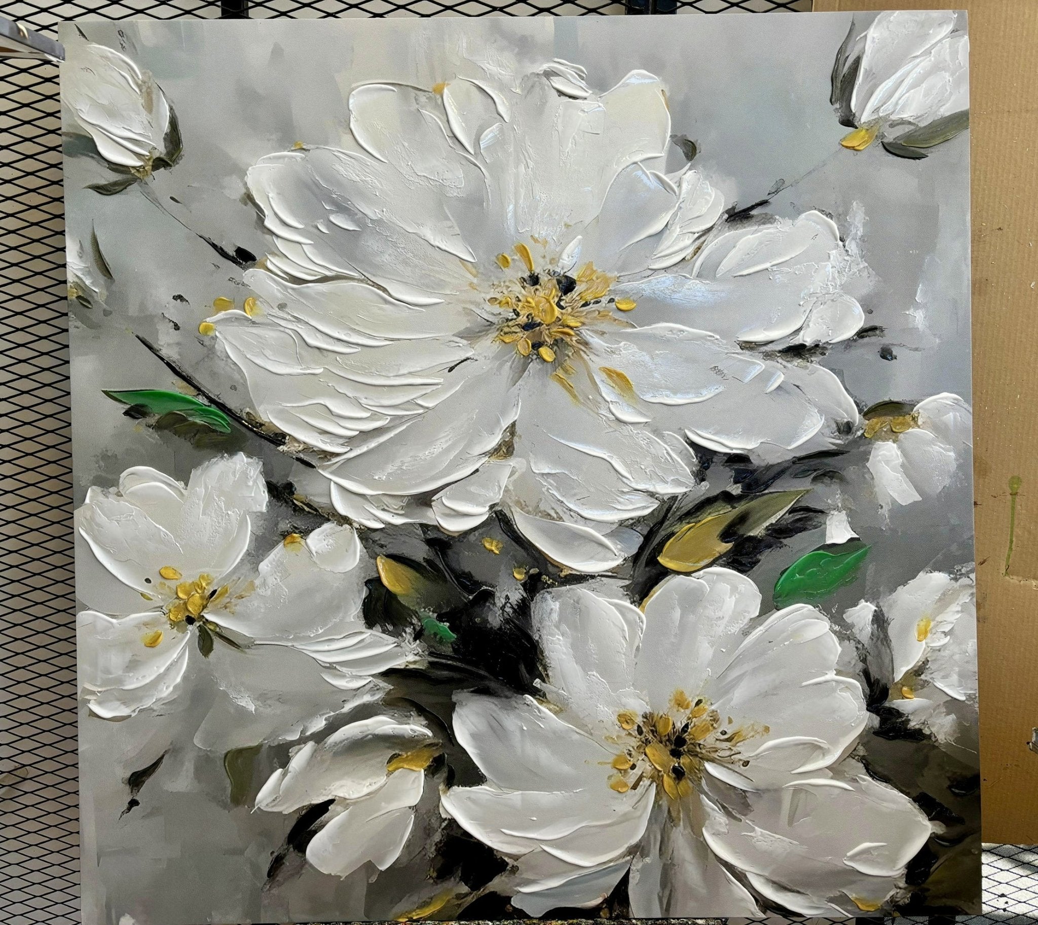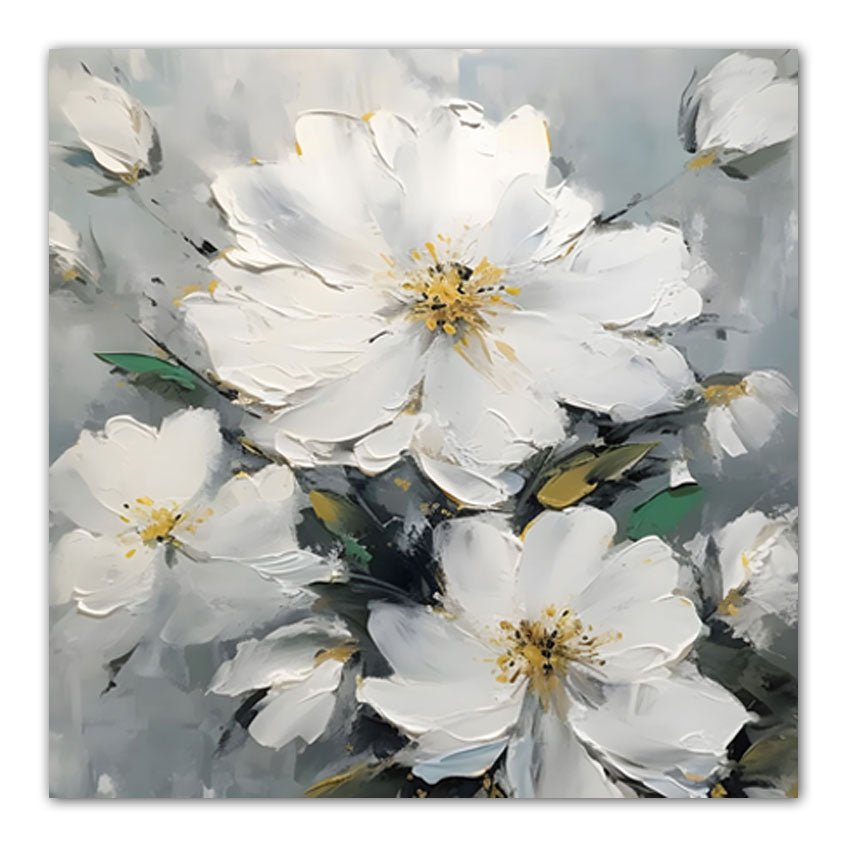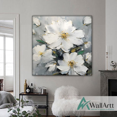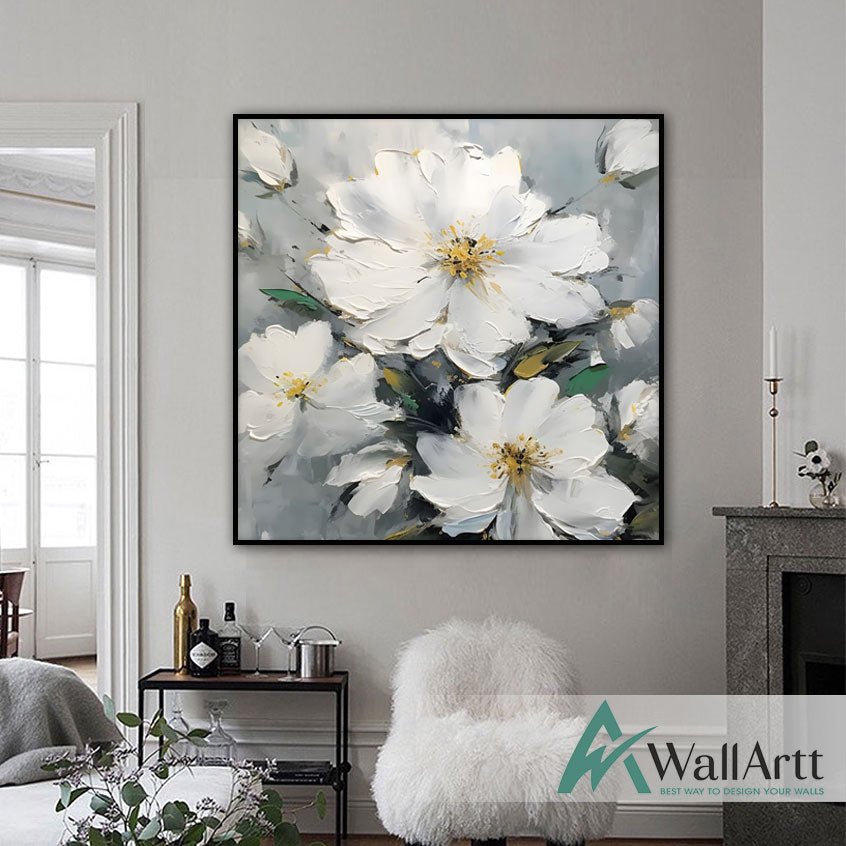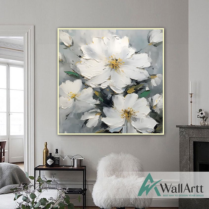 Abstract White Flowers III 3d Heavy Textured Partial Oil Painting