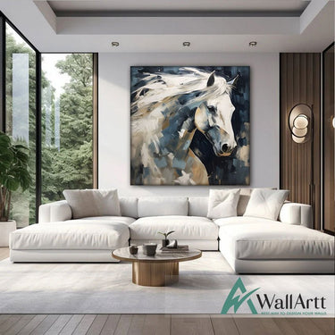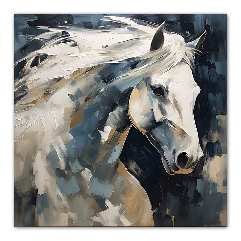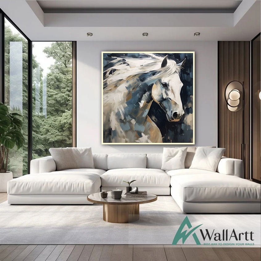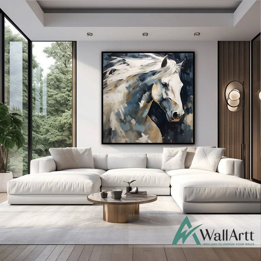 Abstract White Horse II 3D Heavy Textured Partial Oil Painting - Wall Art