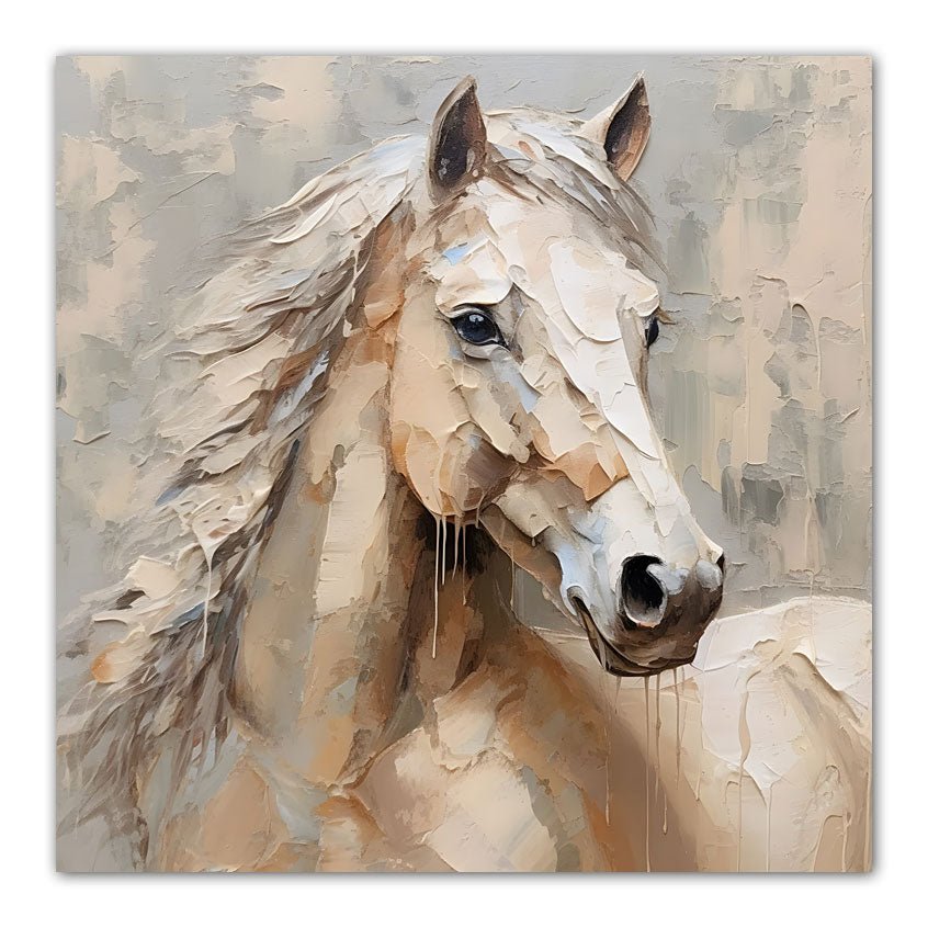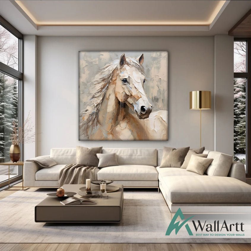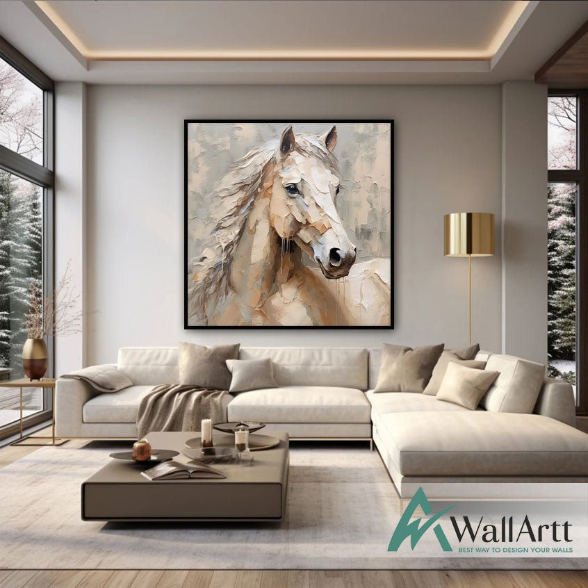 Abstract White Horse III 3D Heavy Textured Partial Oil Painting - Wall Art