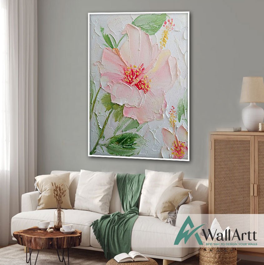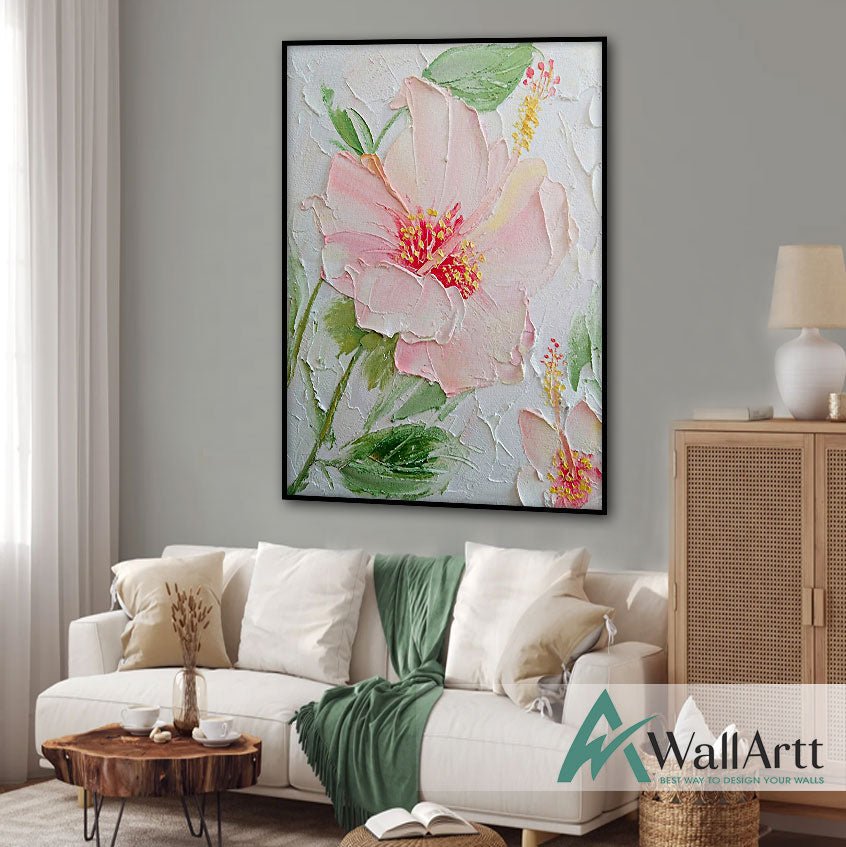 Baby Pink Flower 3d Heavy Textured Partial Oil Painting