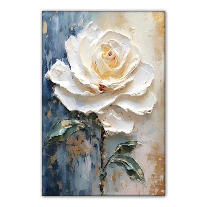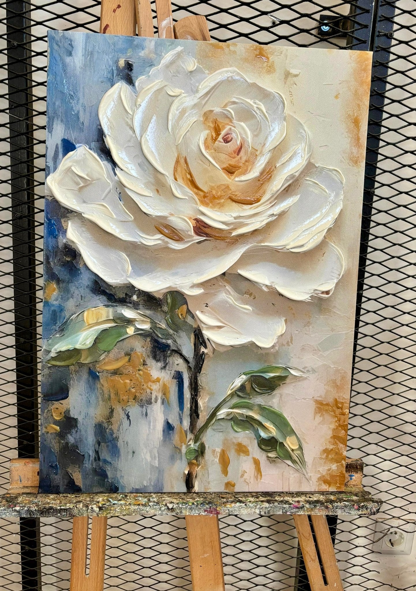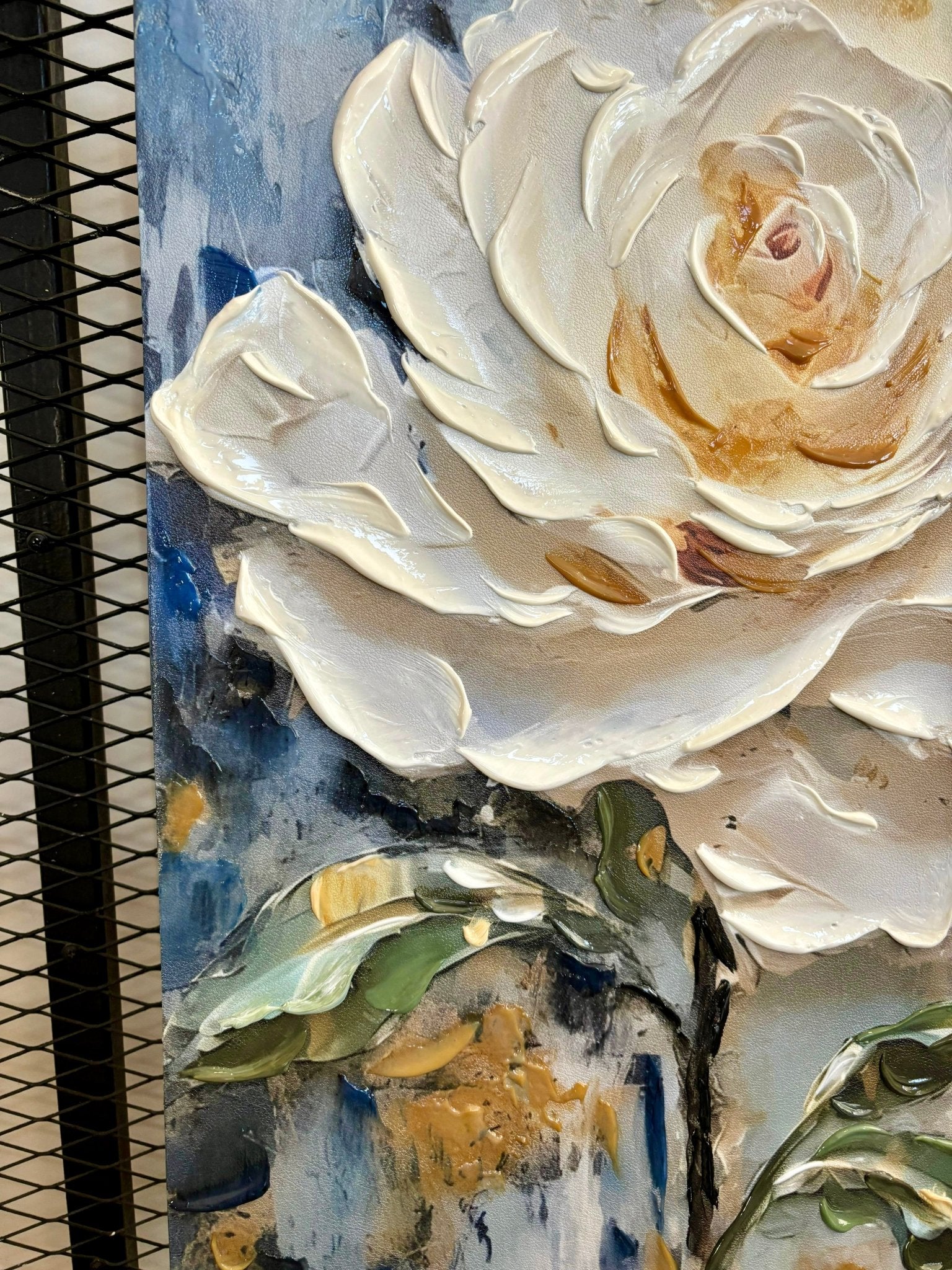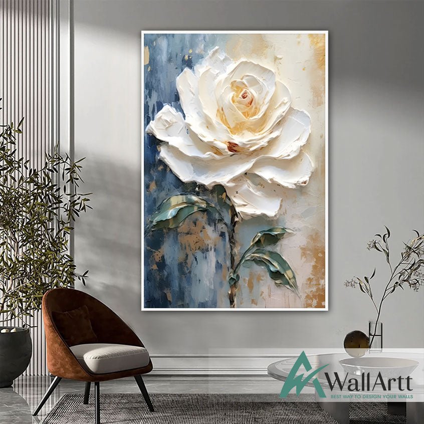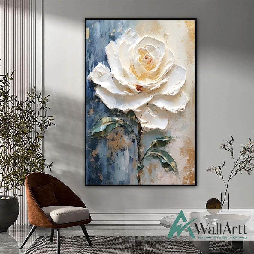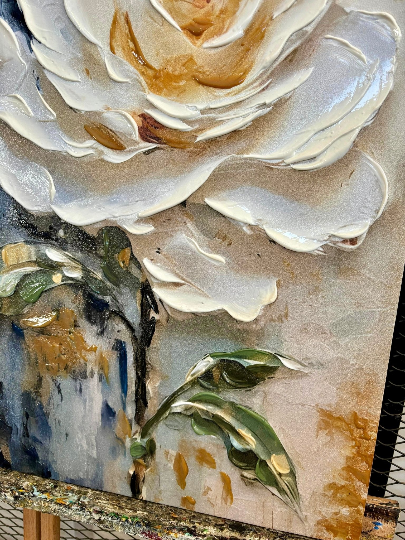 Big White Rose 3d Heavy Textured Partial Oil Painting
