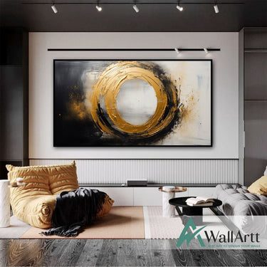 Black Gold Circle 3D Heavy Textured Partial oil Painting