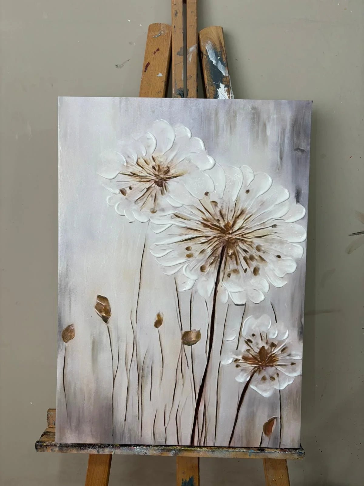 Our 3D paintings aim to achieve a three-dimensional effect using tools such as spatulas and brushes on the printed canvas to create a sense of depth and textural richness.
