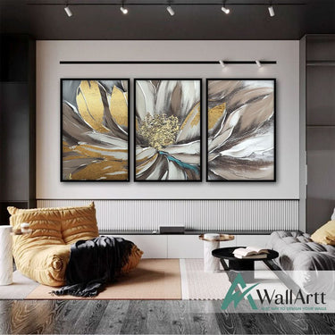 Flower with Gold Foil 3 Piece 3d Heavy Textured Oil Painting