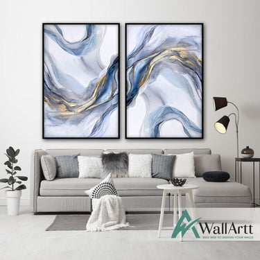 Gold Blue Marble 2 Piece Textured Partial Oil Painting