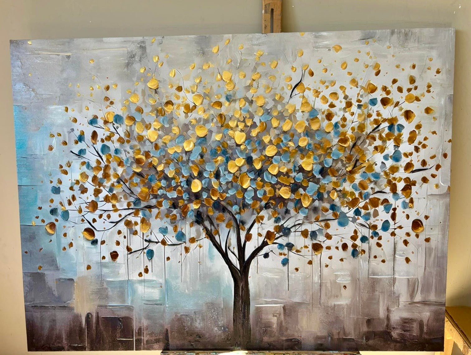 Gold Blue Tree 3d Heavy Textured Partial Oil Painting