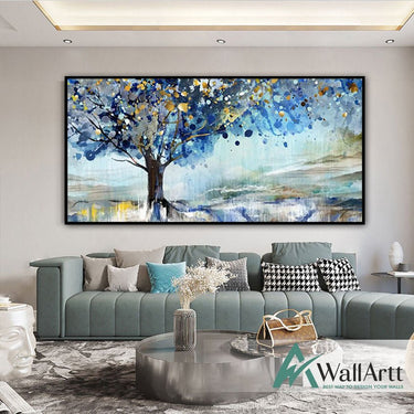 Gold Blue Tree Textured Partial Oil Painting