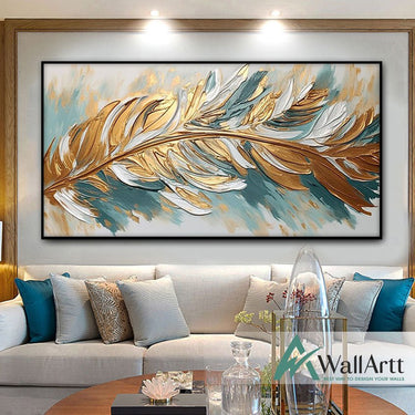 Gold Feather 3d Heavy Textured Partial Oil Painting