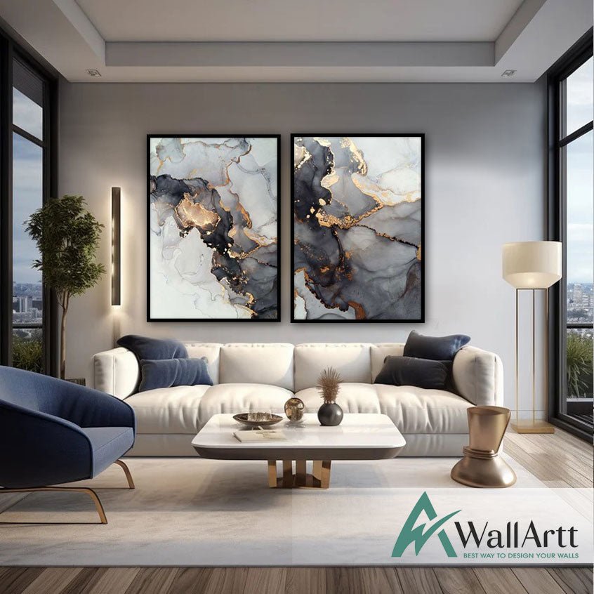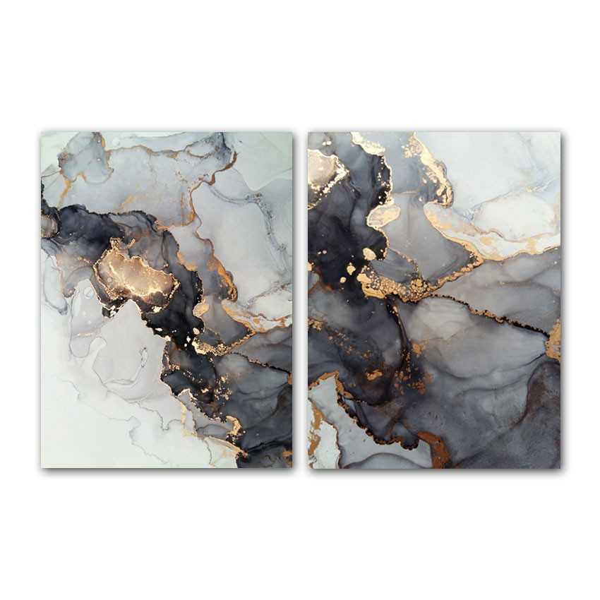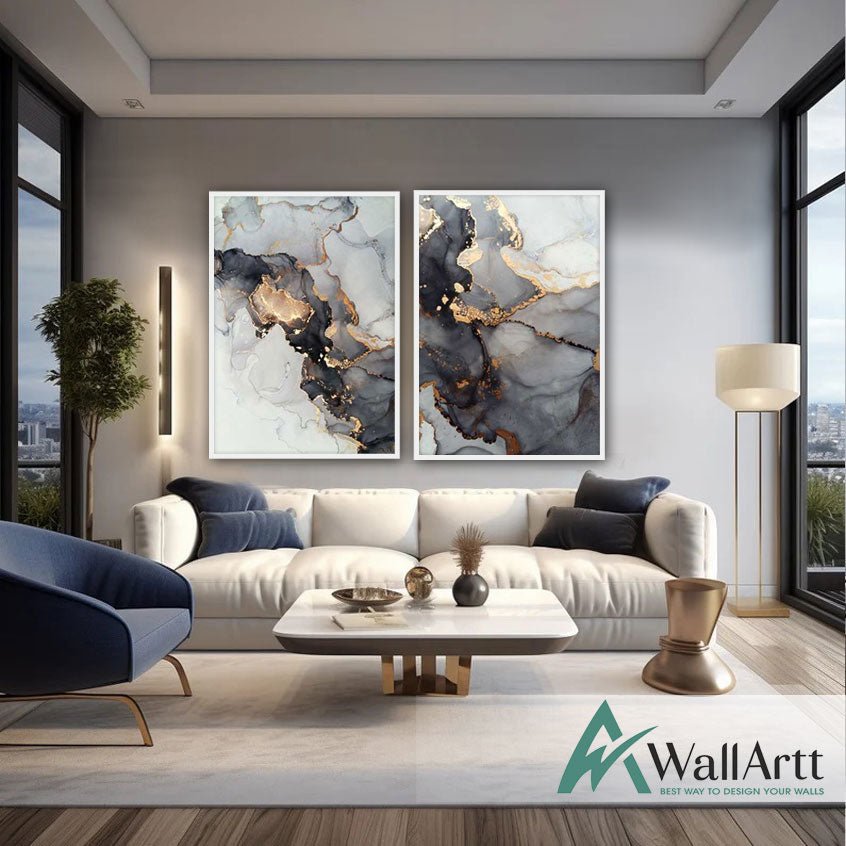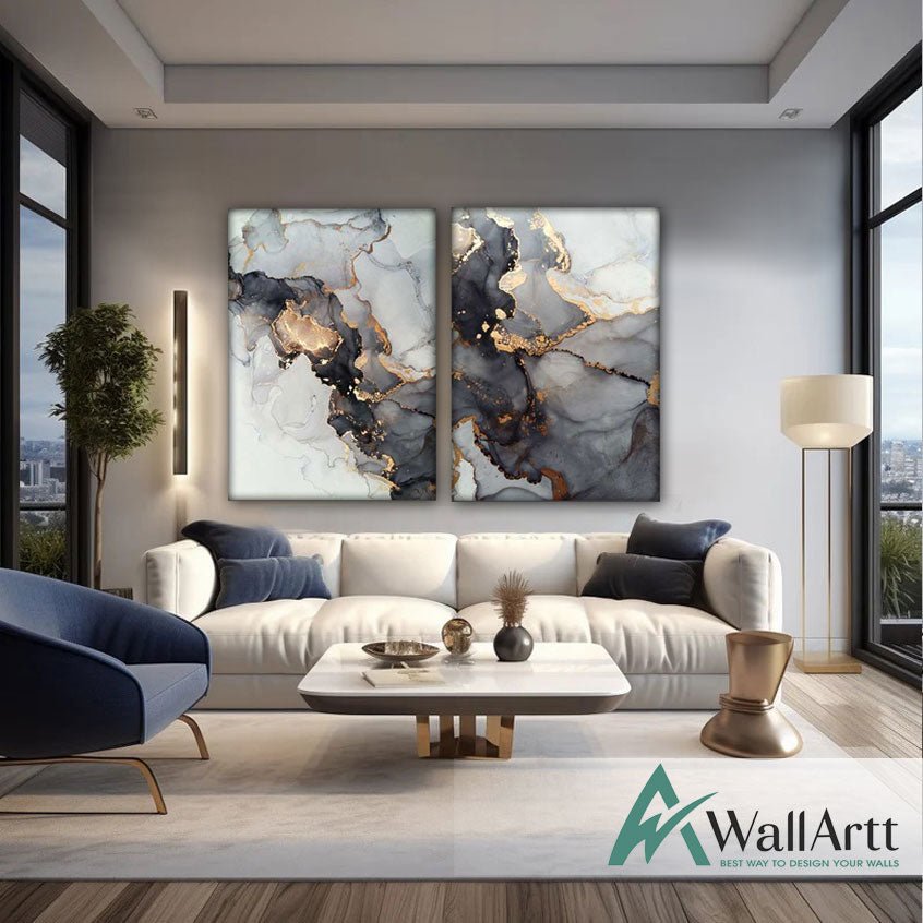 Gold Marble with Gold Foil 2 Piece Textured Oil Painting
