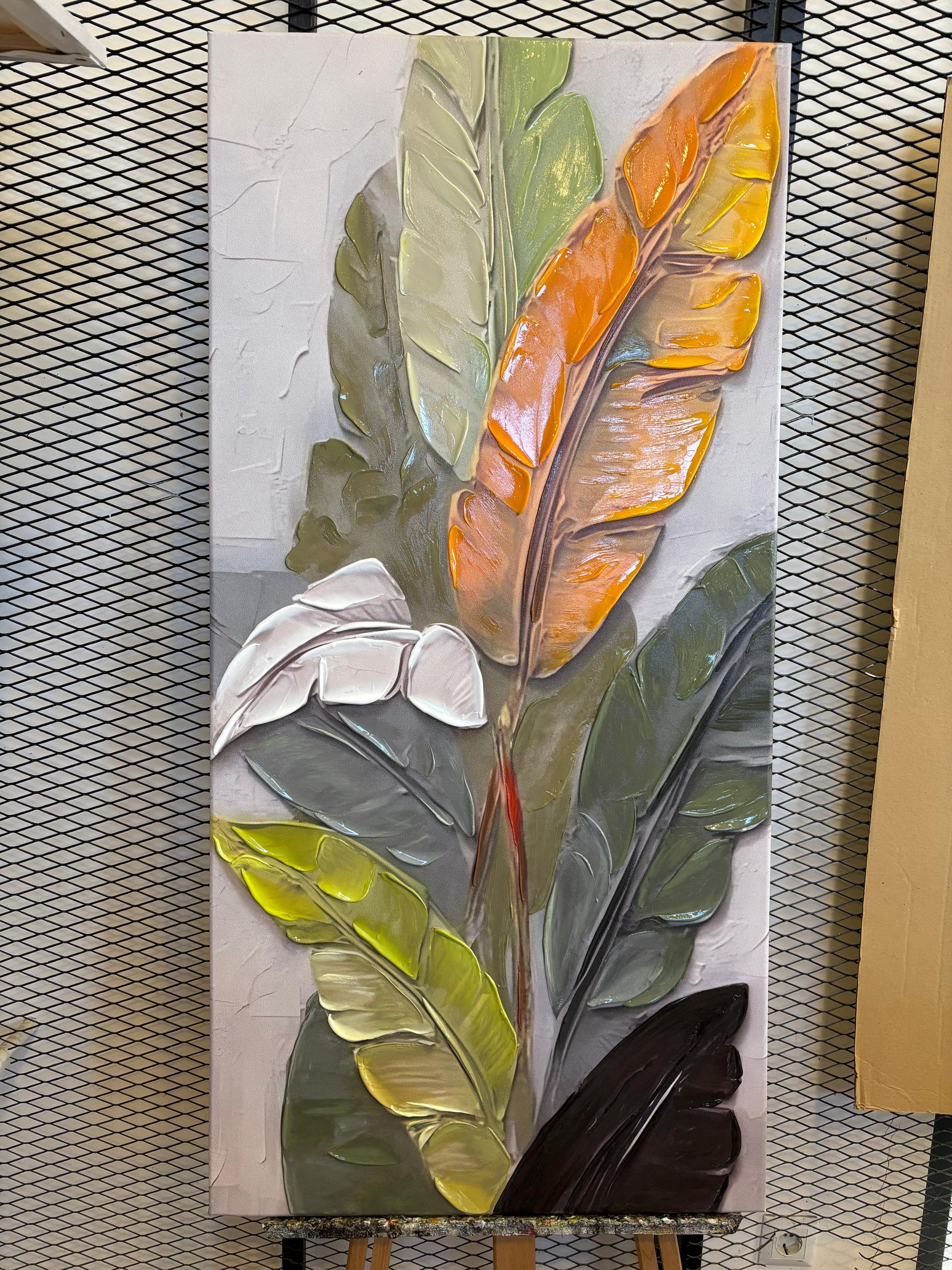 Orange Green Leaves 3d Heavy Textured Partial Oil Painting
