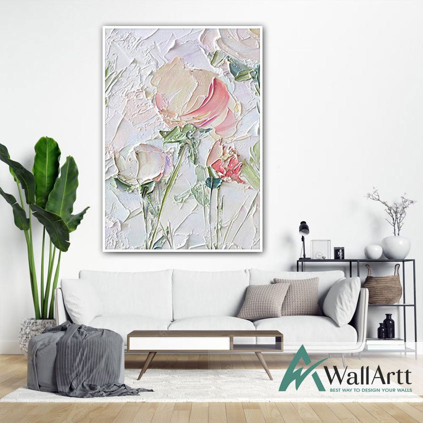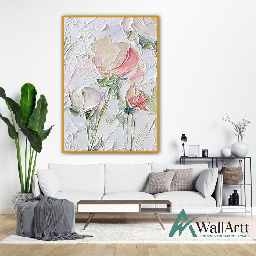 Pale Pink Flowers 3d Heavy Textured Partial Oil Painting