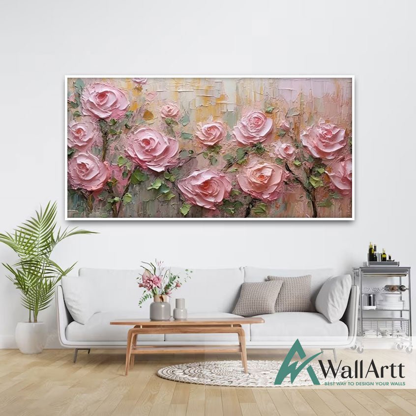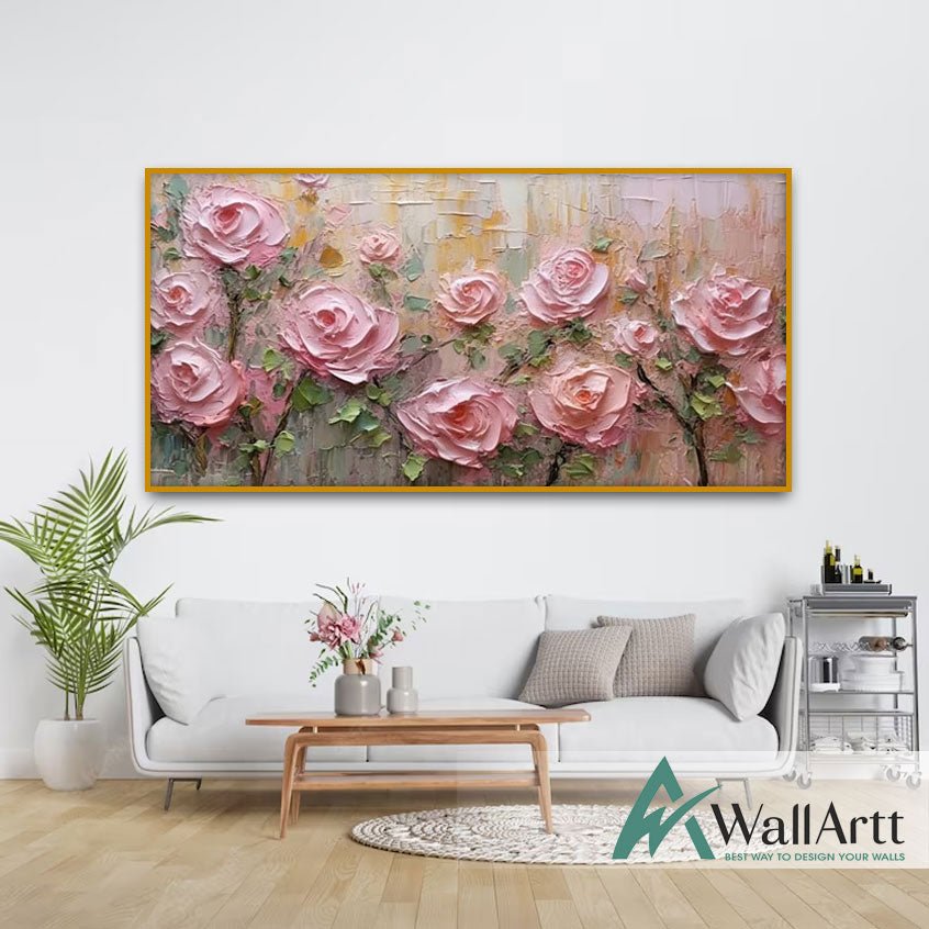 Pink Roses 3d Heavy Textured Partial Oil Painting
