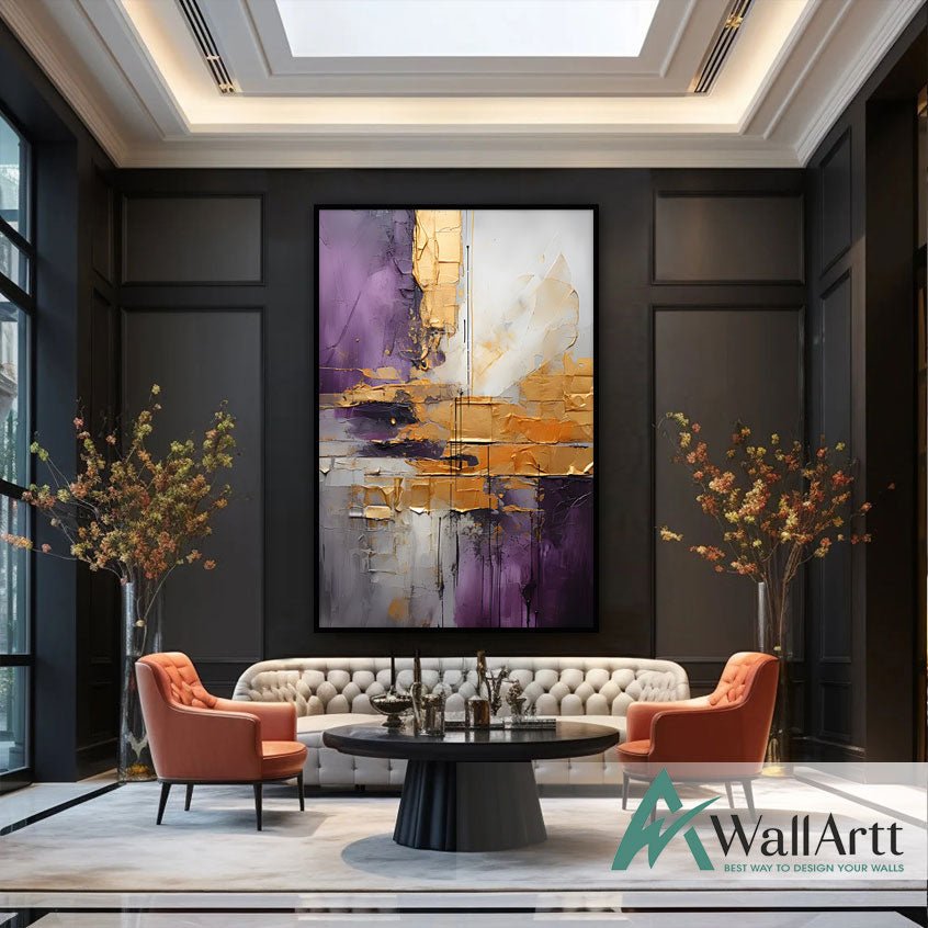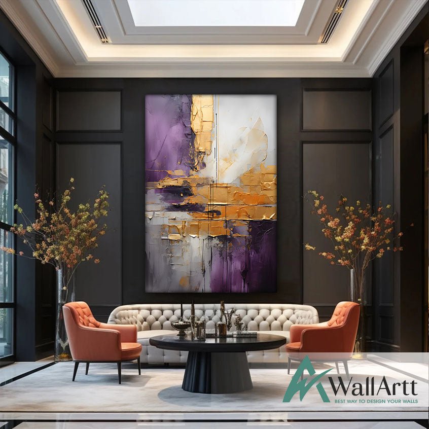 Purple Gold Abstract 3d Heavy Textured Partial Oil Painting