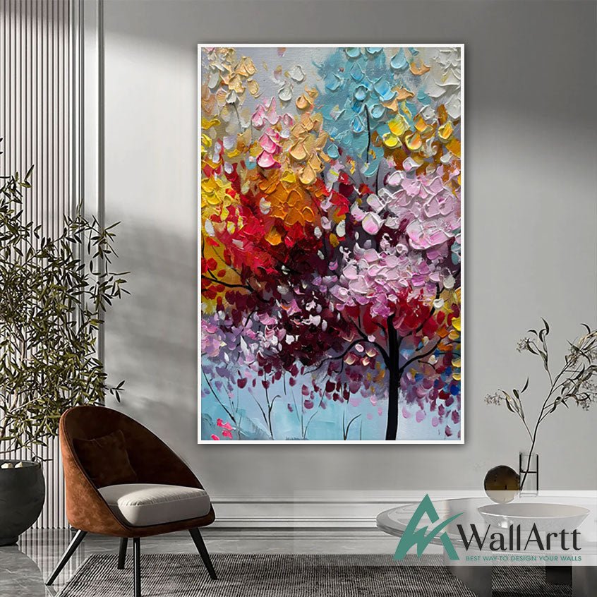Tree with colorful Leaves 3d Heavy Textured Oil Painting