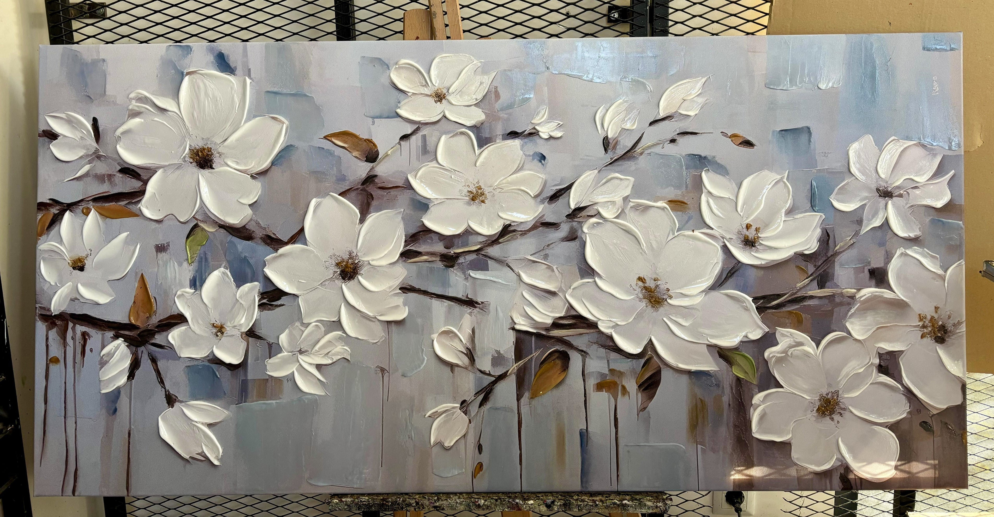 White Flower Branch 3d Heavy Textured Partial Oil Painting