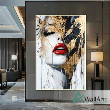 The piece is created on a premium printed canvas and then hand-finished by our artists. Using palette knives and brushes, they build up texture along selected facial contours, hair and gold foil accents, resulting in a richly layered surface. The raised areas and metallic highlights interact beautifully with light, giving the painting depth and a sense of movement.